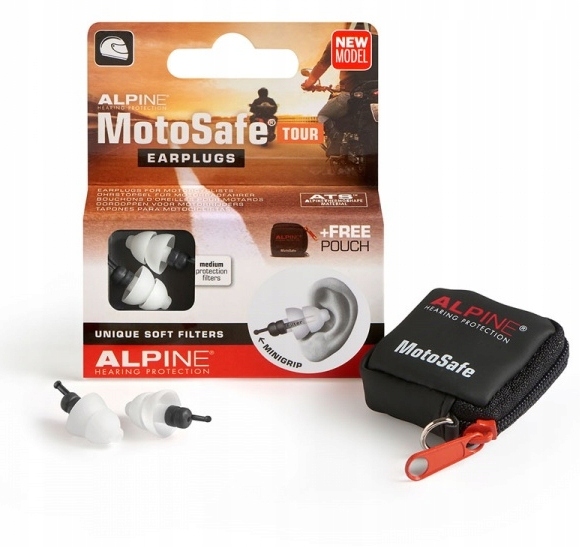 Пропонуючи три типи вушних затичок, Alpine робить використання високоякісних засобів захисту органів слуху з фільтром простішим і доступнішим для широкої громадськості. Оптимальний захист вушних затичок MotoSafe® пригнічує шкідливі звуки, не відчуваючи себе ізольованими. Маршрут, навігація, домофон і сам мотоцикл залишаються чітко чутними завдяки інноваційному фільтру AlpineAcousticFilters™.
