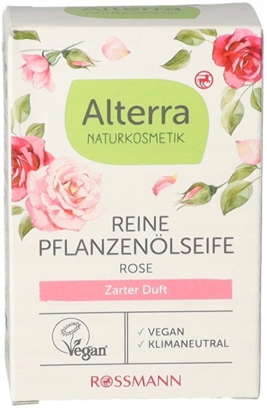 Кожна шкіра заслуговує на індивідуальний догляд. Рослинне мило Alterra з екстрактом квітів троянди виготовляється з високоякісних чистих рослинних олій. Ніжно очищає шкіру, допомагаючи утримувати вологу в шкірі. Ніжний аромат побалує ваші почуття.