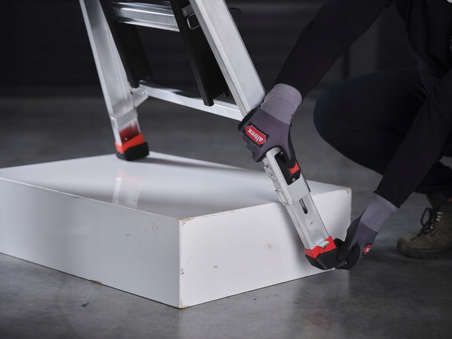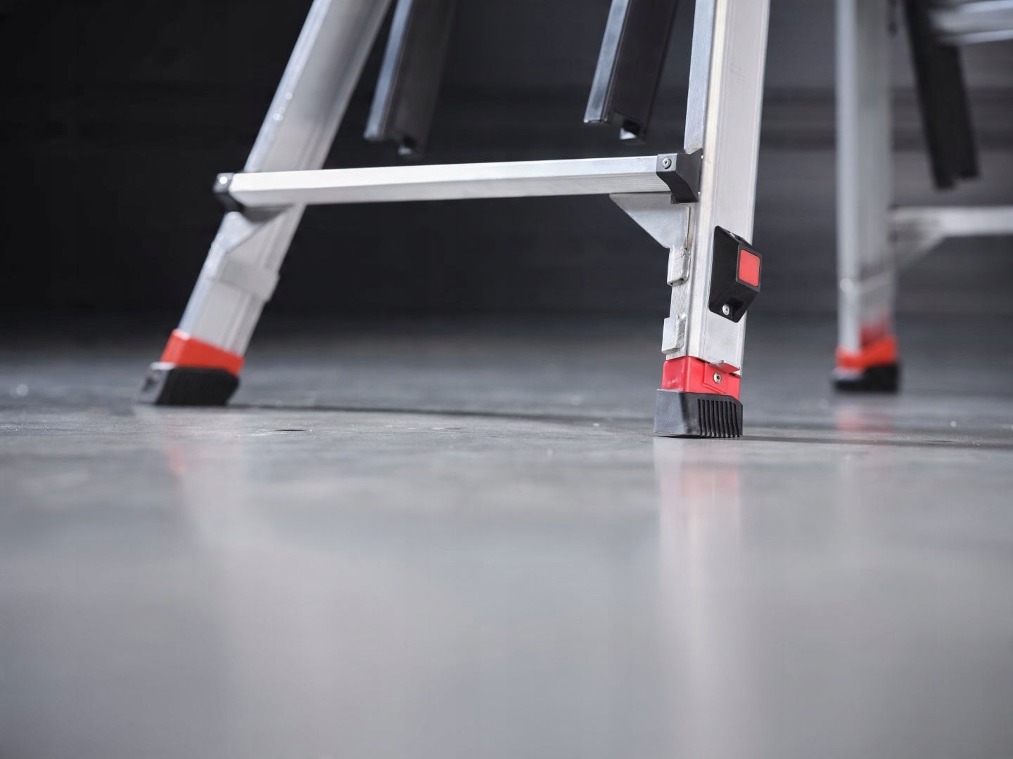 Стабільність на нерівних поверхнях: Завдяки регульованим ногам драбина може бути безпечно встановлена на нерівних поверхнях, таких як сходи або нерівномірна місцевість. Нон -ноги з новою системою блокування забезпечують стабільність навіть на гладких поверхнях.
