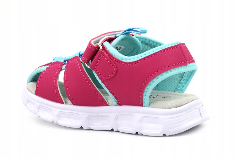 Дитячі босоніжки American Club виготовлені з екошкіри на зовнішня сторона та тканина кольору фуксії.