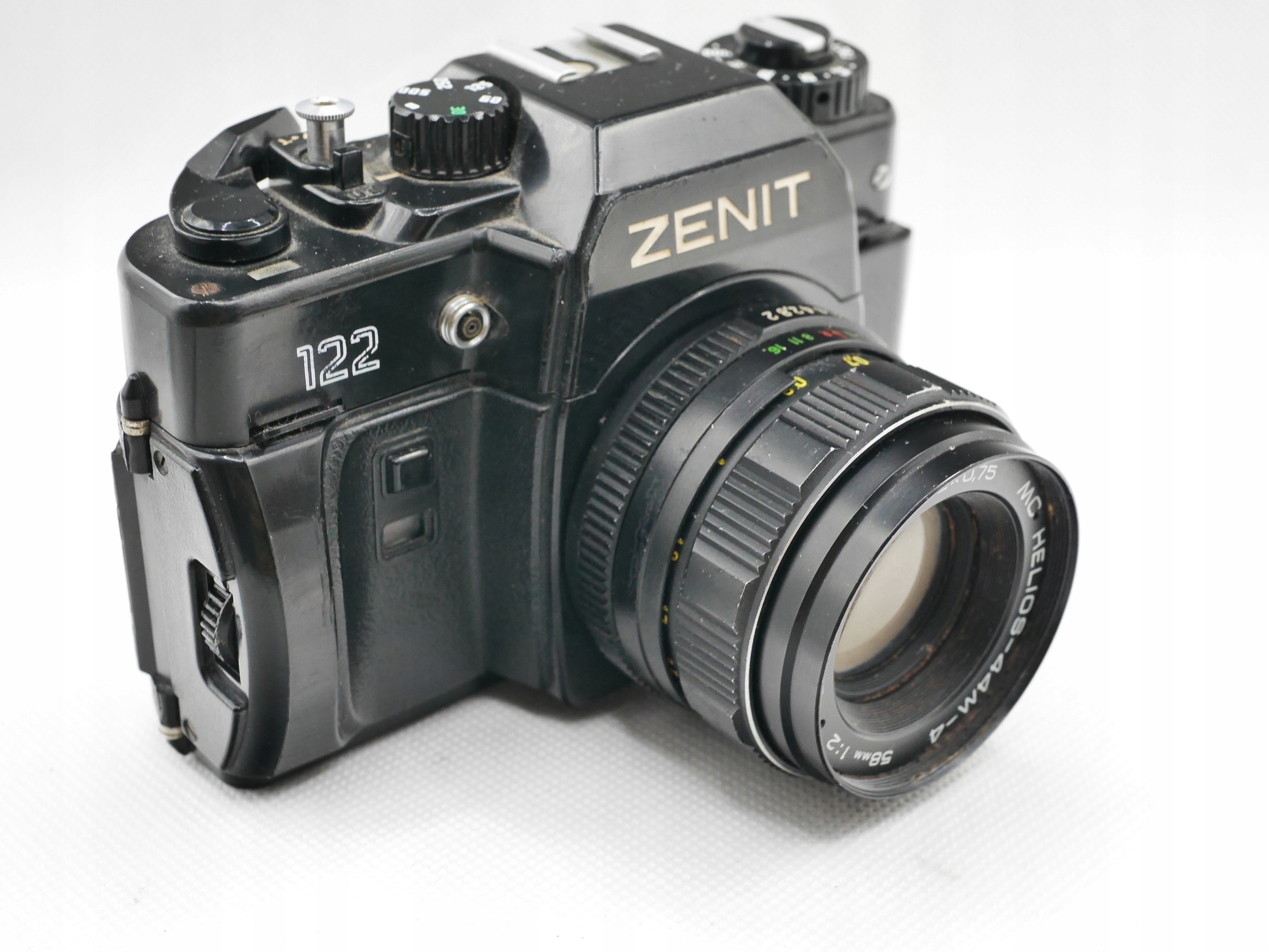 Аналоговий дзеркальний фотоапарат Зеніт 122 з об'єктивом Геліос МС 44-М4. Корпус і лінзи візуально як на фото. Фіксований натяг, світловий гриб Helios всередині, оптика без подряпин, функціональна діафрагма