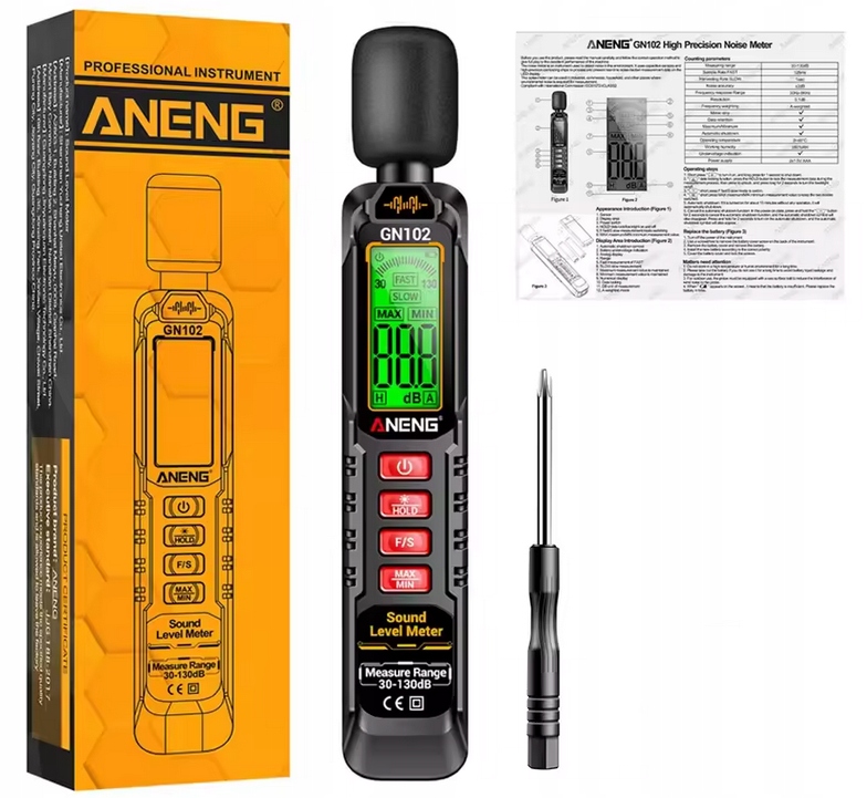 ANENG GN102 Цифровий вимірювач рівня звуку (шуму) 30-130 дБ LCD-дисплей