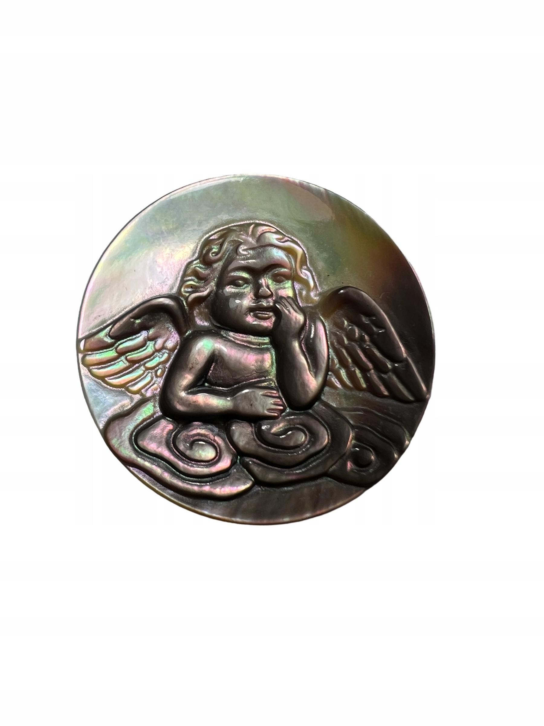 Темний перламутр гравірована пластина АНГЕЛ 31 мм для ювелірних виробів 1 шт.