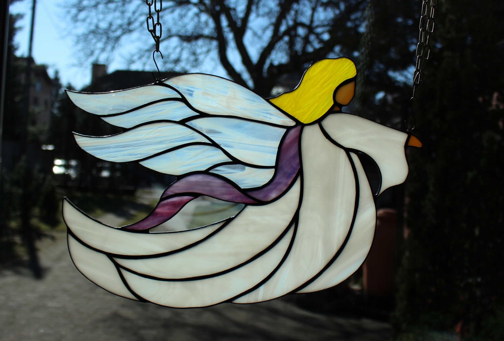 Ангел Тіффані Кал білий вітражний, для підвішування