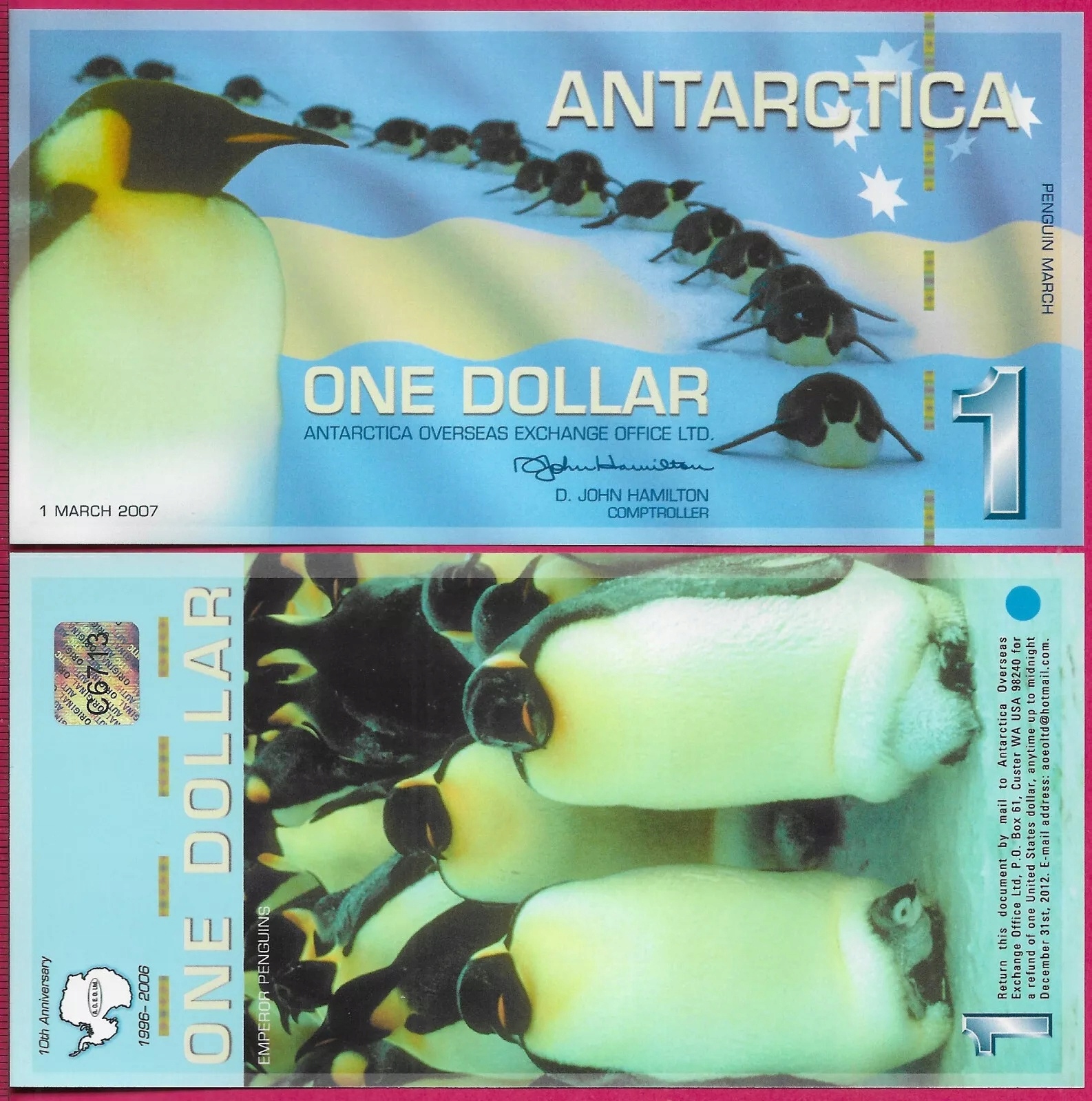 Прекрасна банкнота 1 долар від Антарктиди - 2007 року в абсолютно ідеальній банківській справі та (ЮНК).