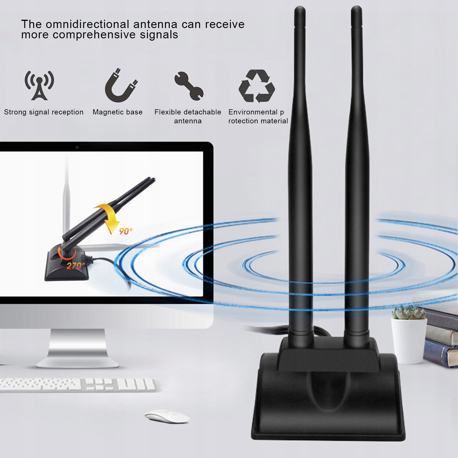 ✔️ Невеликий розмір не займає місця, гнучкий поворот на 360°, антена згинається під кутом від 90° до 180°.