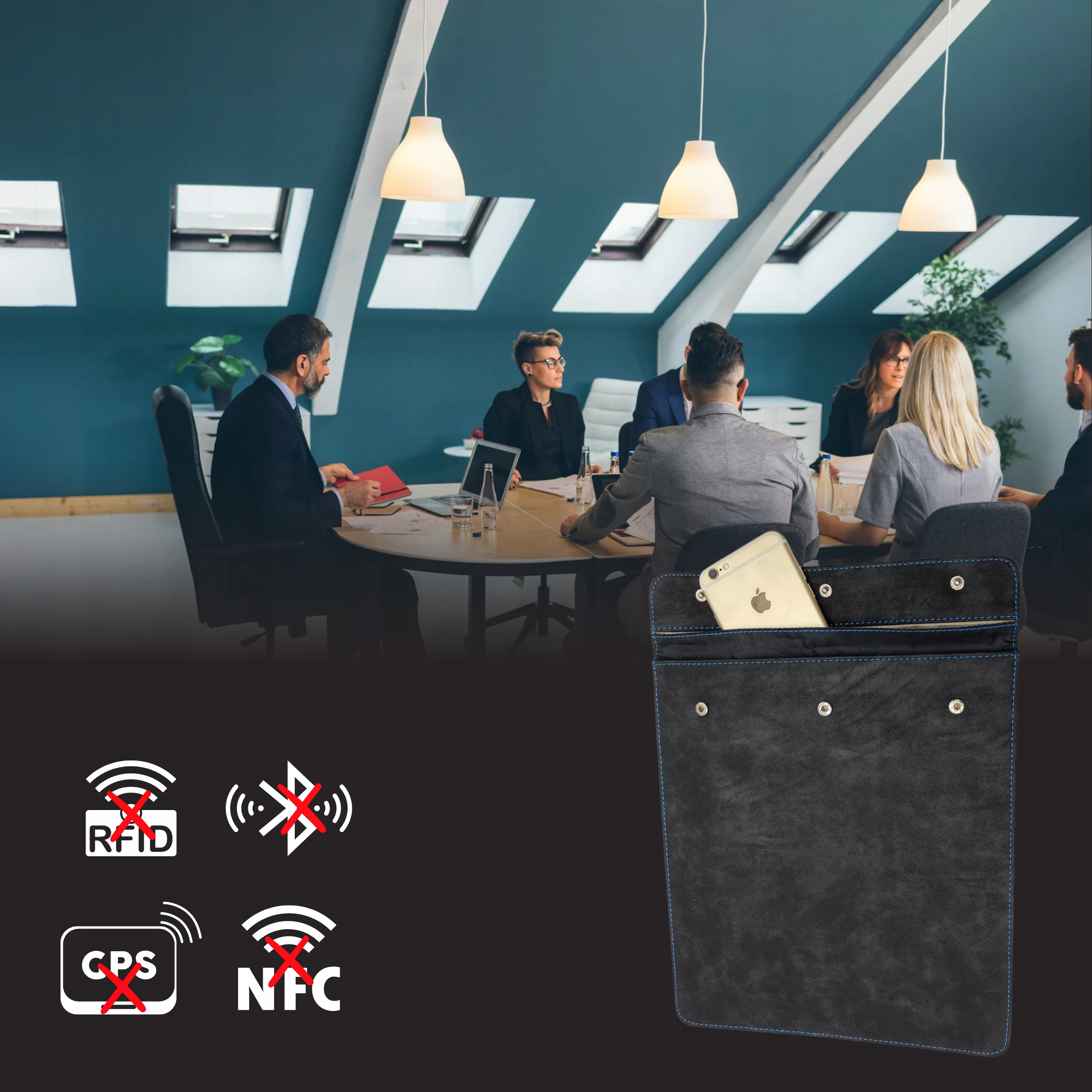 Ідеальне рішення для ділових зустрічей. Ви на діловій зустрічі або ви не хочете, щоб ваш телефон читав у заданий момент, все, що вам потрібно зробити, - це поставити телефон всередину портфеля і закрити його, через деякий час телефон втратить діапазон і буде повністю відрізаний.
