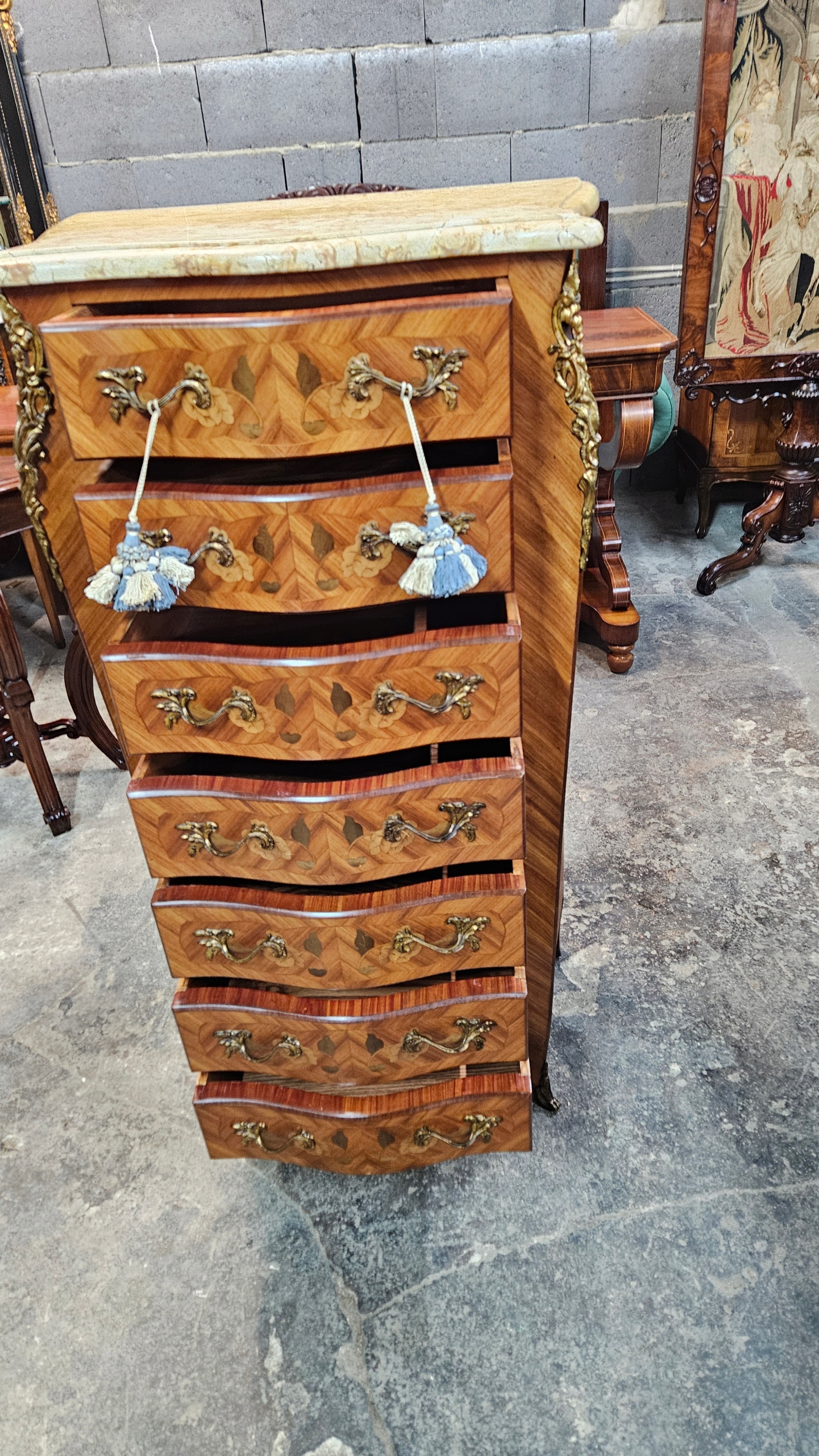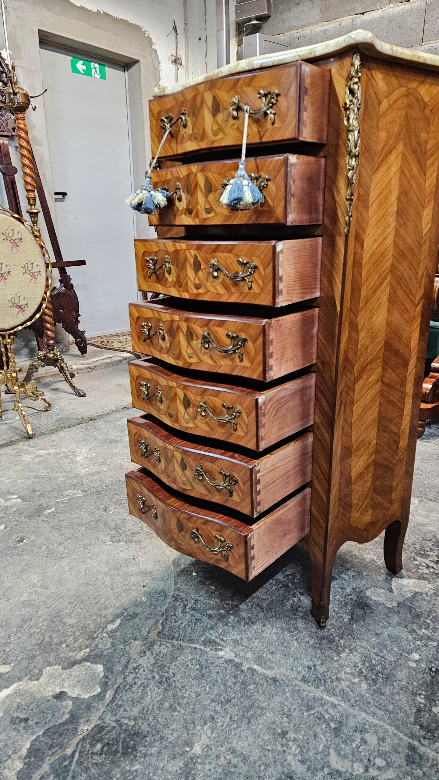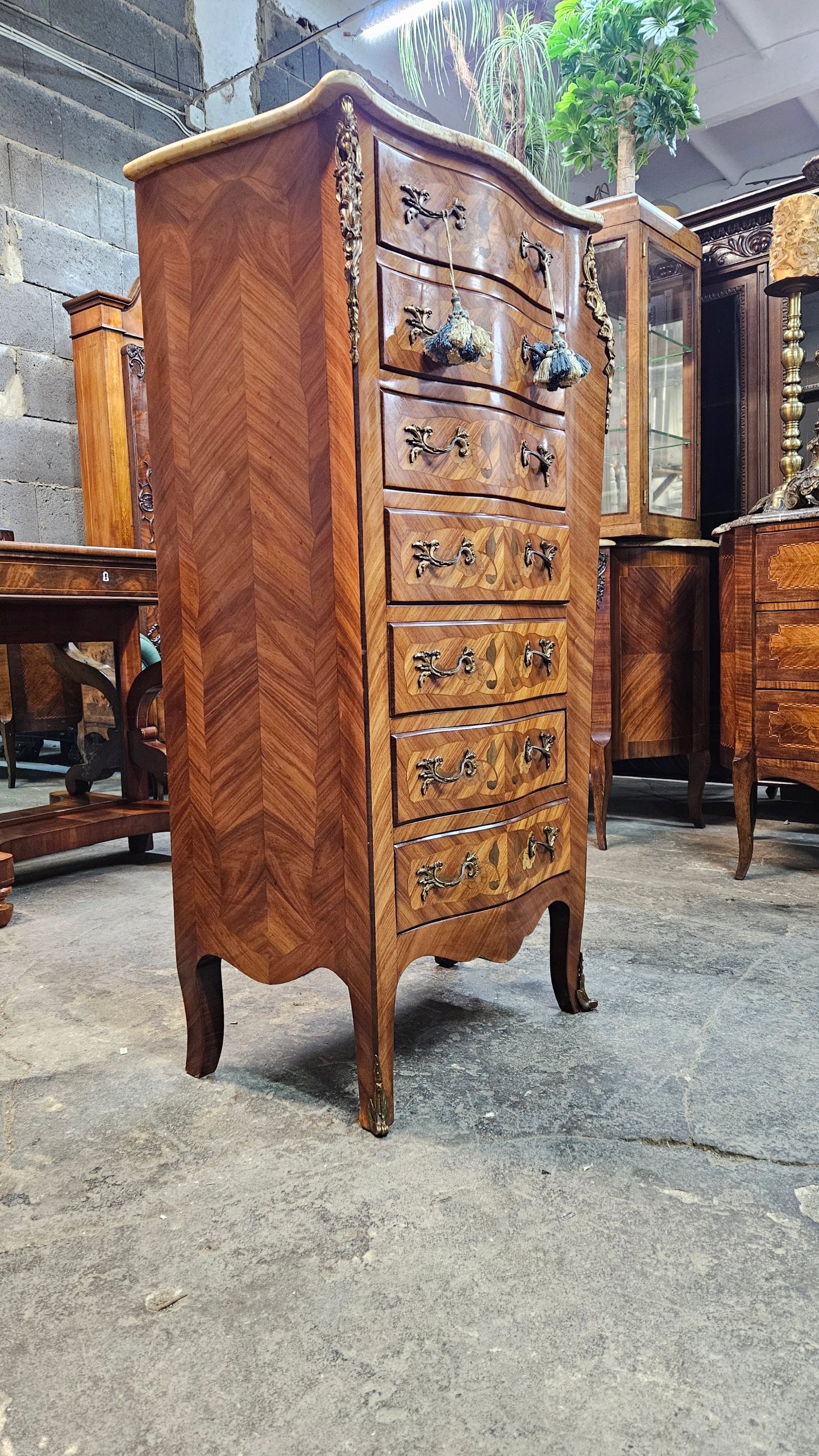 Виготовлений з дерева, шпонований інтрансія волоського горіха, без кори жуть без млявої, - важка конюшня. Ящики сім штук. , зігнуті ноги. Підлітки латунь Ми передзвонимо вам
