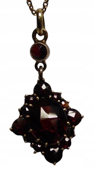 АНТИЧНИЙ КУЛОН З ГРАНІТАМИ РУХОМИЙ ДЕКОРАЦІЙ РОЗЕТКА. Підвіска позолочена - позолочена (імовірно латунь).Загальна довжина 3,31 см. Ширина прикраси 1,59 сантиметра, висота 5,1 мм. Натуральні гранати, центральна огранка троянди 0,8 х 1,1 см.