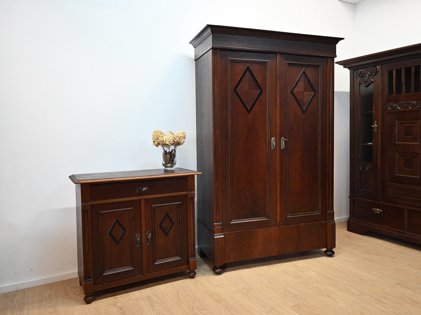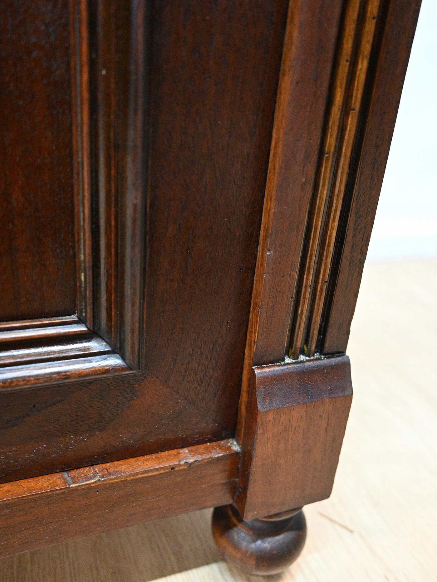 Дуже хороший стан. Меблі, підготовлені до використання. Зовнішні поверхні та центр меблів були оновлені. Меблі вже мають свої роки та сліди минулого часу, що не впливає на його естетичний прийом, вони є свідченням справжності меблів. Брудену скриню можна негайно поставити в квартиру.