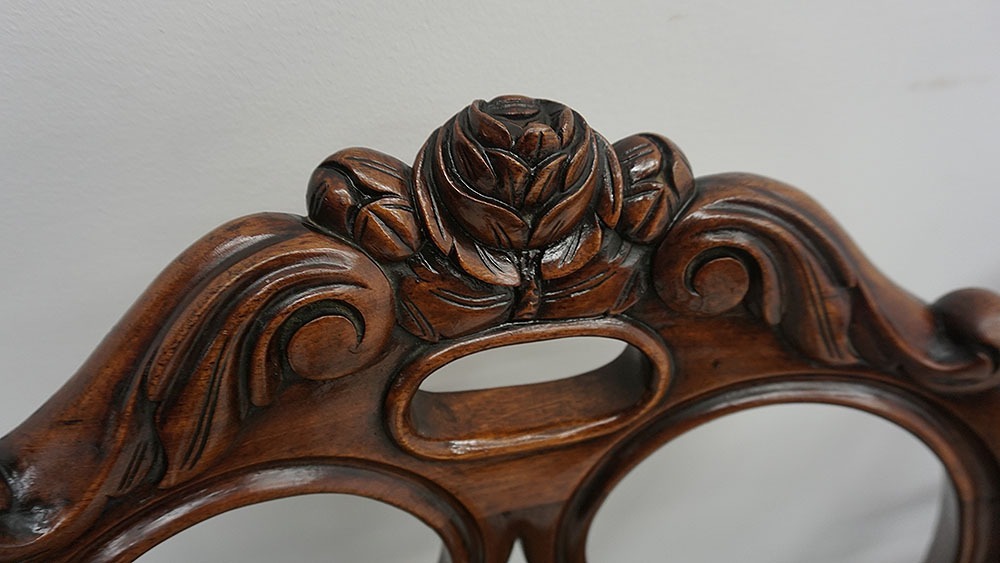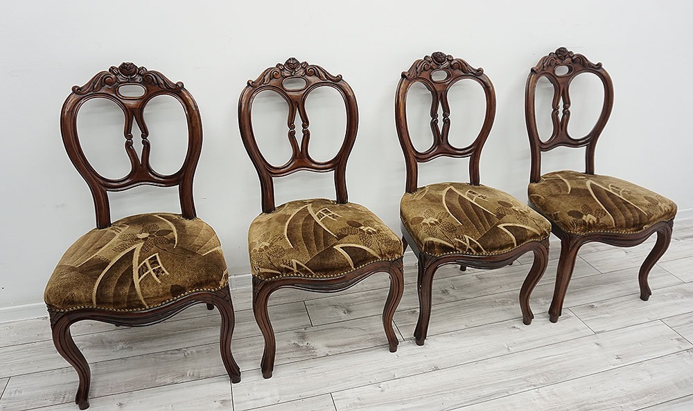 Предметом аукціону є надзвичайно красиві, різьблені стільці, виготовлені з горіхового дерева, у міжвоєнному стилі, з Франції. Крісла виглядають дуже стильно, дуже зручні та функціональні.