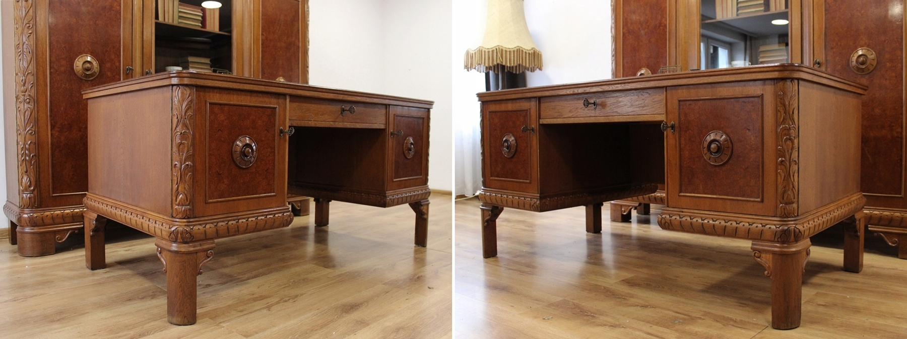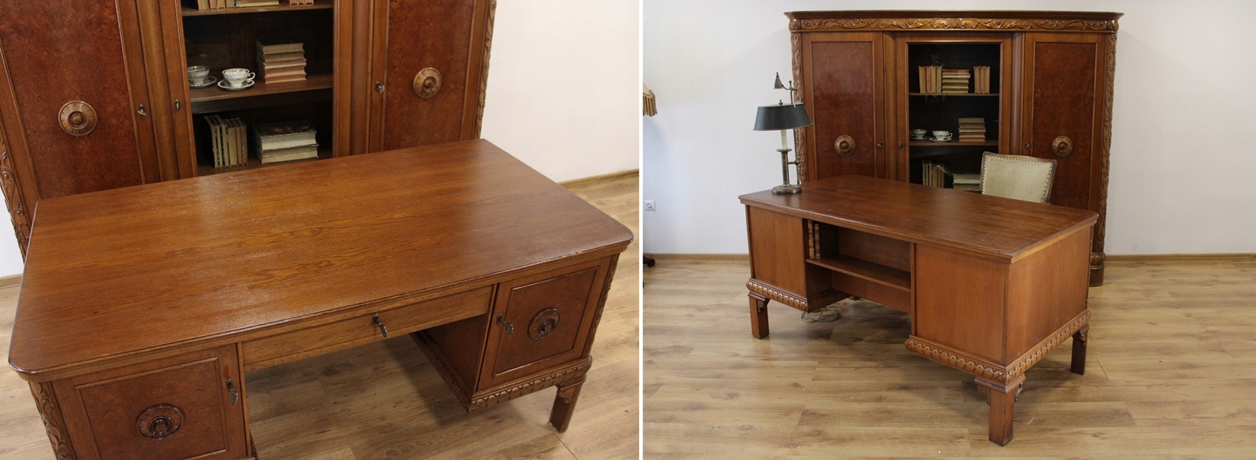 В хорошому стані. Меблі готові до використання. Оновлено зовнішні поверхні та внутрішні меблі. Меблі вже старі, а сліди минулого, які не впливають на їх естетичне сприйняття, є доказом автентичності меблів. Офіс можна відразу заселити в квартиру.