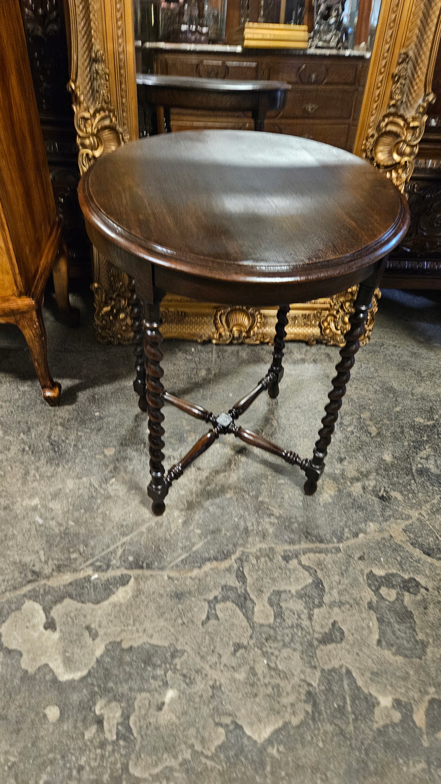 Антикварний старий приємний стіл, масивний на косочках - круглий