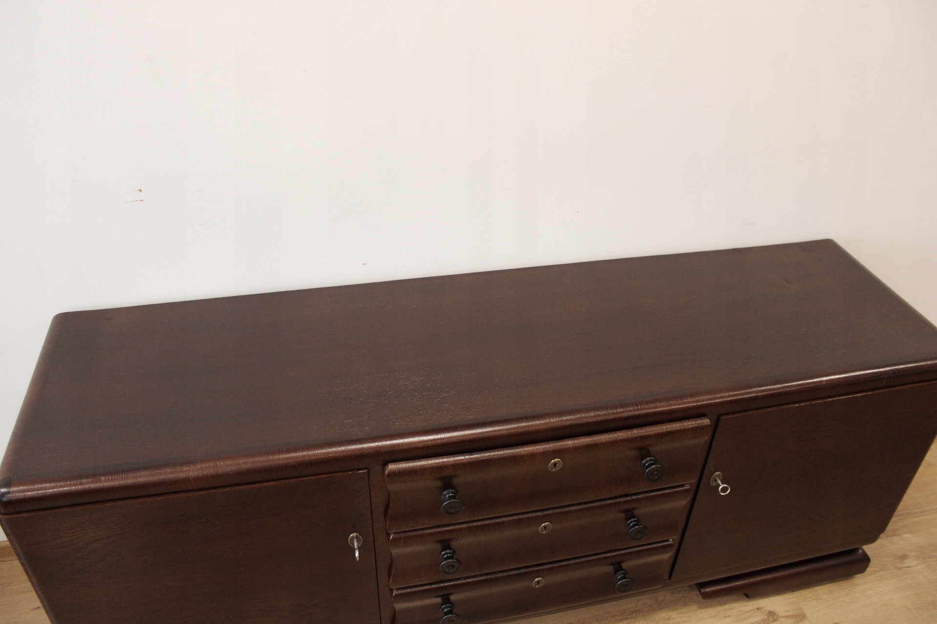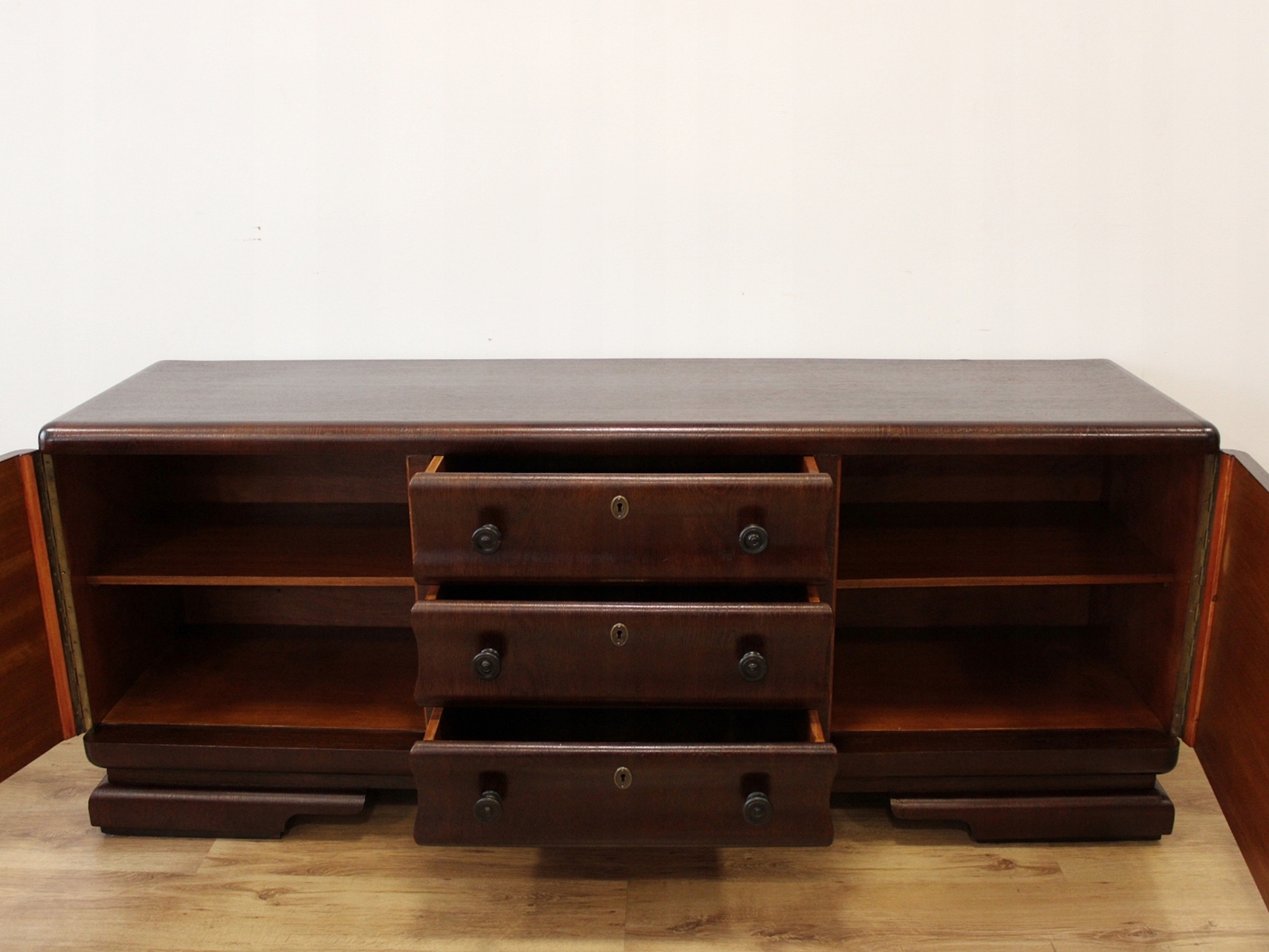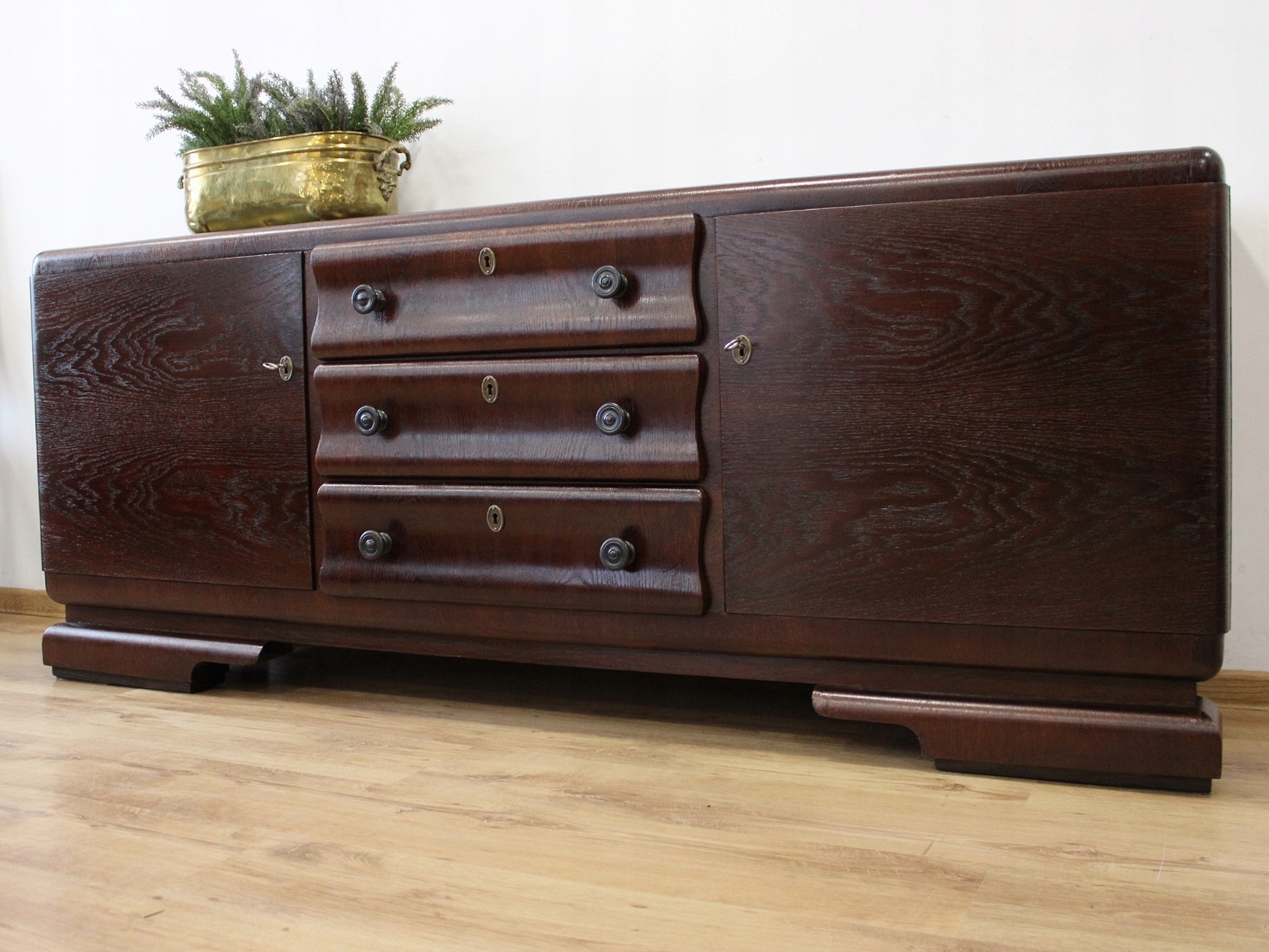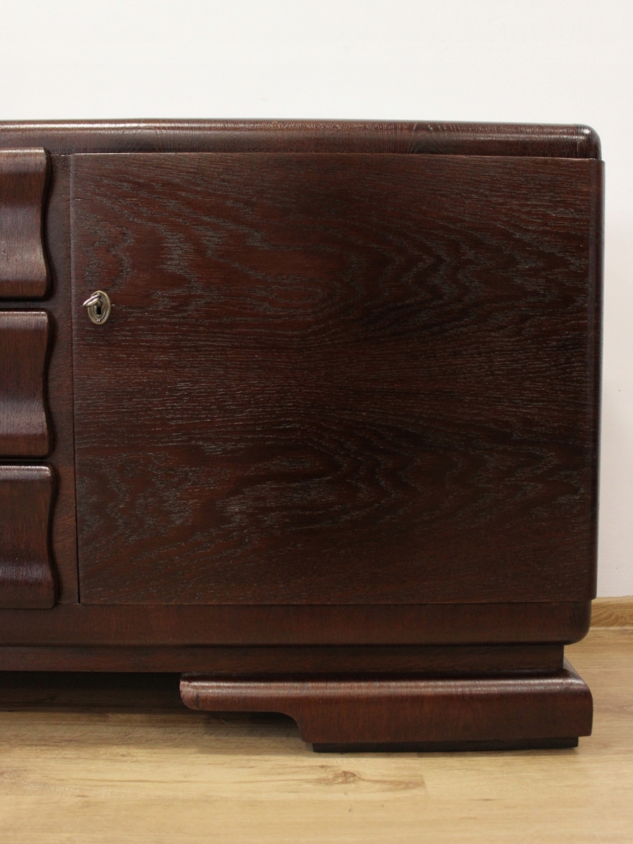 Ідеально підходить для телевізора, низький довгий комод у стилі ар-деко з вигнутими ящиками.