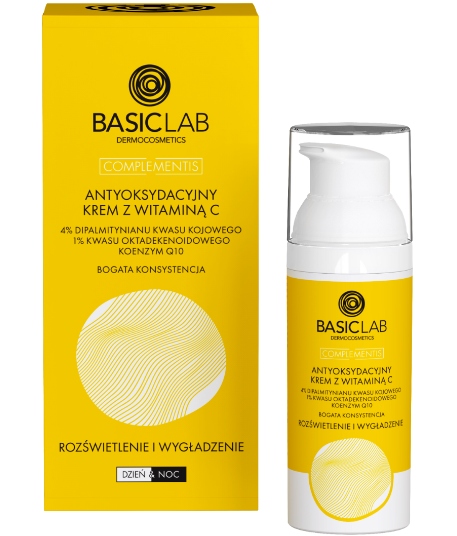 антиоксидантний крем BasicLab з вітаміном С із насиченою консистенцією, освітленням і згладжуванням 50 мл