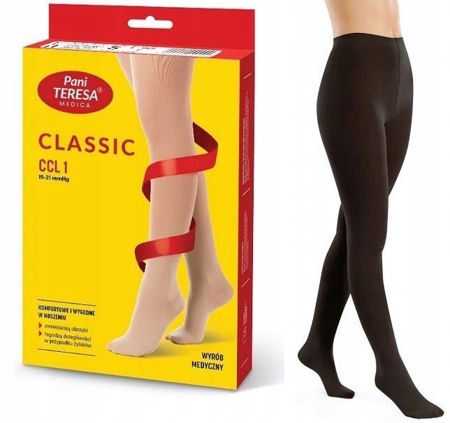 Компресійні продукти Pass Teresa Medica Classic є це медичні пристрої, що використовуються в компресійній терапії. Продукти призначені для лікування варикозного розширення вен і набряків. В упаковці 1 пара колготок.