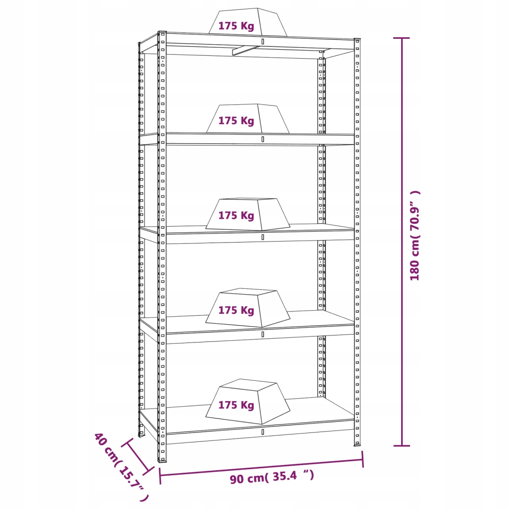 - Суцільна конструкція: Побудована з оцинкованих сталевих рам та міцних дощок, виготовлених з матеріалу на основі деревини, наші полиці гарантують стабільність та стійкість до вологи. і дужки для зміцнення під кожною полицею, полиці характеризуються винятковою здатністю навантаження, досягаючи до 875 кг (163 кг на полицю). 4 Додатково: