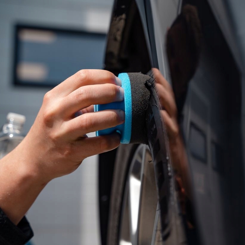 аплікатор, призначений для нанесення вбрання та негрів, має зручну ручку, виготовлену з твердої піни, яка запобігає забрудненню рук, а хвиляста робоча поверхня, виготовлена з м'якої губки, яка легко адаптується до сторони шини, завдяки якому нанесений продукт досягає всіх складок і куточків та крих шини.