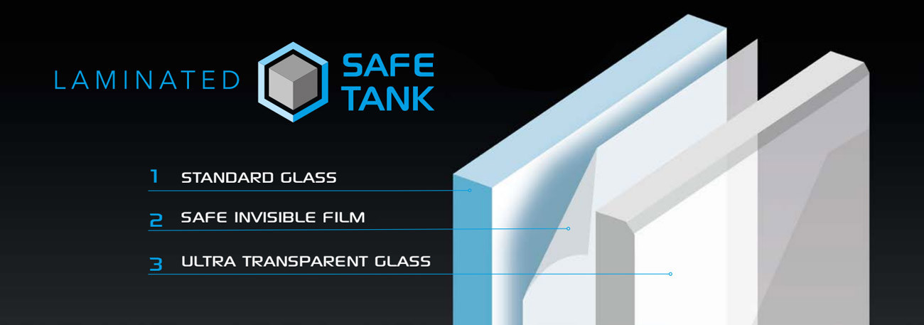 Протягом багатьох років акваріумні набори акваріумів були пристосовані до жорстких європейських стандартів щодо стандартів товщини скла та якості. Однак Департамент досліджень та розробок Аквайла налаштував себе на те, щоб ще більше підняти цю планку. В результаті роботи новий безпечний танк. Народилася нова технологія, яка є унікальним рішенням у галузі акваріума. Завдяки цьому рішенням вам не доведеться турбуватися про негайний витік води внаслідок випадкової пошкодження резервуара. У цій ситуації келих не впаде на невеликі шматки. Характерна "павутиння" може з’явитися на його поверхні, але скло буде утримувати в одному шматці. Це дозволить вам спокійно перемістити рибу в інше місце.