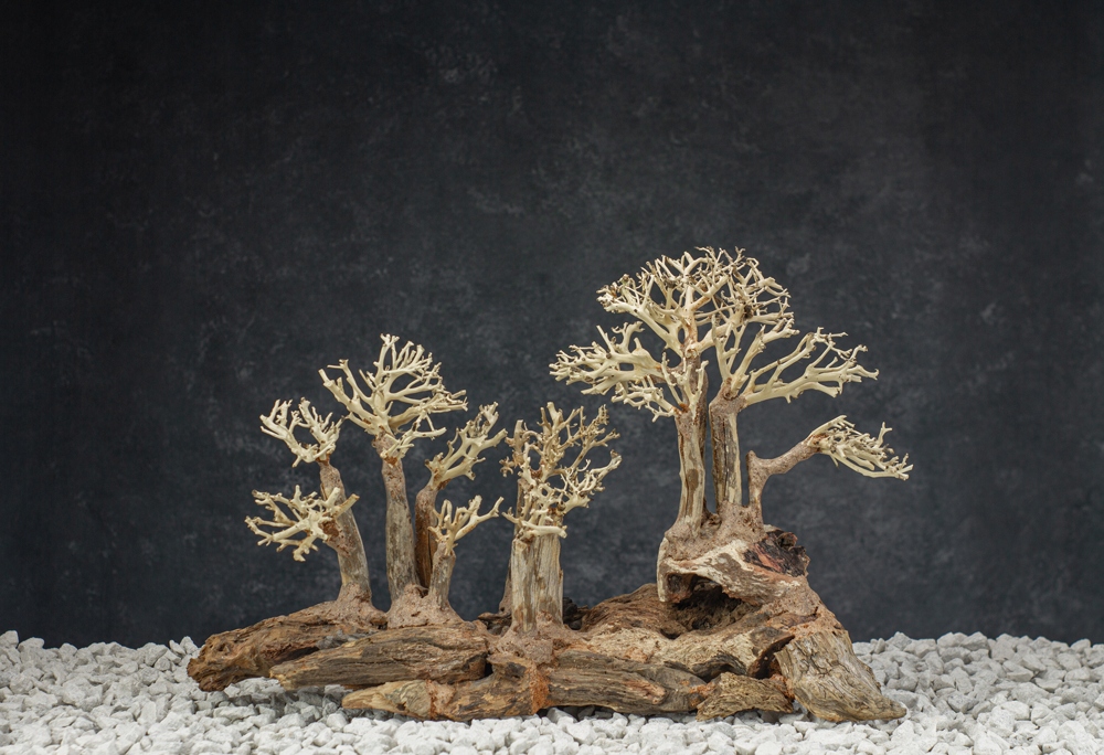 Щоб отримати бажаний ефект, дерево повинно бути зеленим з акваріумними рослинами. Завдяки загостреним гілкам рослини прекрасно дотримуються дерева і подрібнюють їх, не вимагаючи склеювання. Залежно від освітлення та бажаного ефекту, ми можемо використовувати для цієї мети, серед інших: