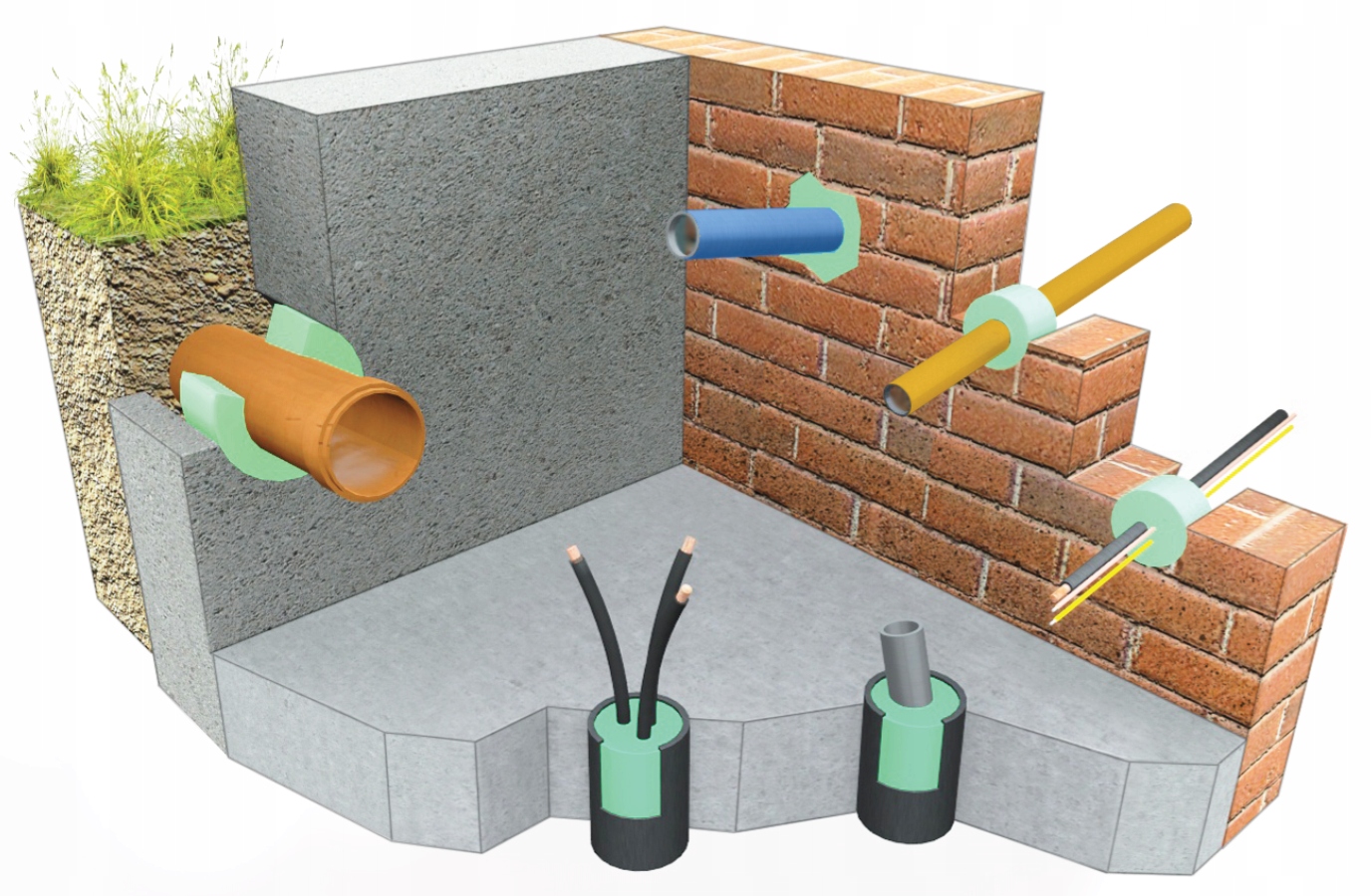 Маса, що відповідає за ущільнення проходження труб та кабелів через стіни та фундаменти, активно захищає від води. Спеціальний герметик, який використовується для ліквідації витоків у трубах та кабелях через стіни