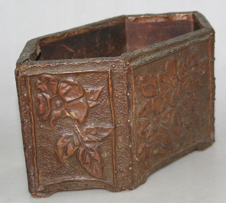 ŻARDINIERA DREWNIANA OKUTA REPUSOWANĄ BLACHĄ SECESJA WIEDEŃSKA