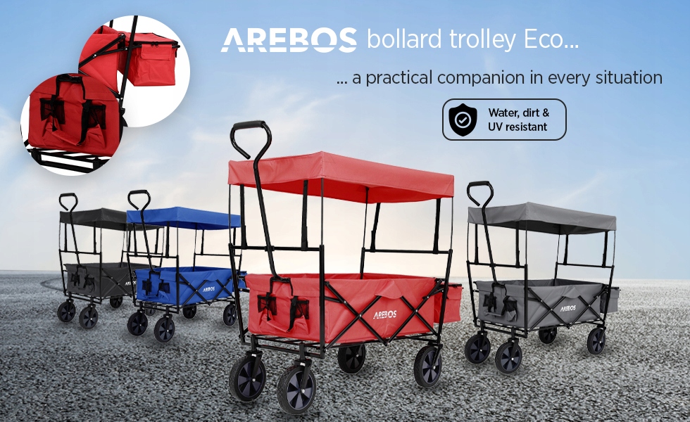 [веселощі] міцна нейлонова тканина та тверда конструкція рамки пропонують максимальну вантажопідйомність до 70 кг. Тому Arebosbollerwagen пропонує достатньо місця для поїздок з дітьми, фестивалями чи іншими рекреаційними заходами.