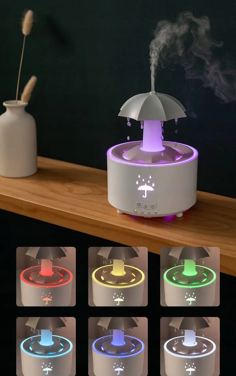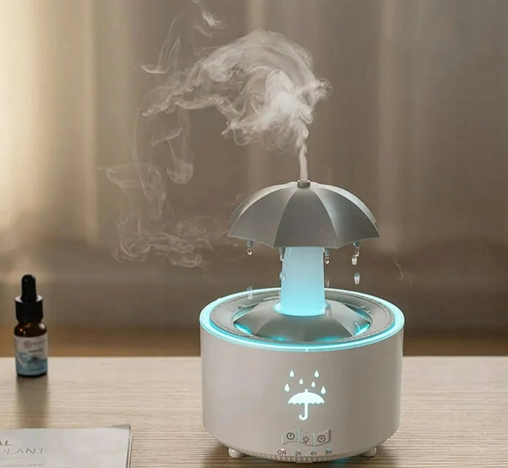 Натхненний дощовою погодою, цей унікальний зволожувач створює чарівний ефект падаючих крапель, які обережно циркулюють, не бризкаючи води. Він випромінює заспокійливий шум, що нагадує ніжний дощ, а його тонке обертання в поєднанні з м'яким світлодіодним світлом забезпечує глибоке розслаблення - ідеально підходить для читання, медитації чи спокійного сну.
