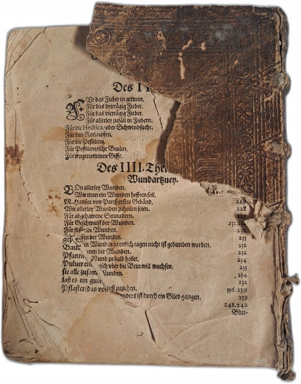 artzneybuch. Darinnen/ Auss Gnaedigem Beuvelch/ Weilund (...) Vast Fuer Alle/ des Menschlichen Leibs/ Anialigen Unnd Gebrechen/ Ausserlesene und Bewehrte Artzneyen/ Gemein Vatterland Teutscher Nation Zu Gut Stands Personen Geschribnen ArtzNeybueChern Zusamen Getragen/ Unnd in Den Truck Verfertiget Sind. / Durch hochermeldter ihrer f.g. Hofmedicum Osswaldt Gäbelkhouern [тобто. Gabelkover] / der artzney-docorn. Und nun mit gnädiger bewilligung (...) vilen orten verbessrt/ und mit nutzlichen heilsamen artzney gemehrt worden. Медична книга в