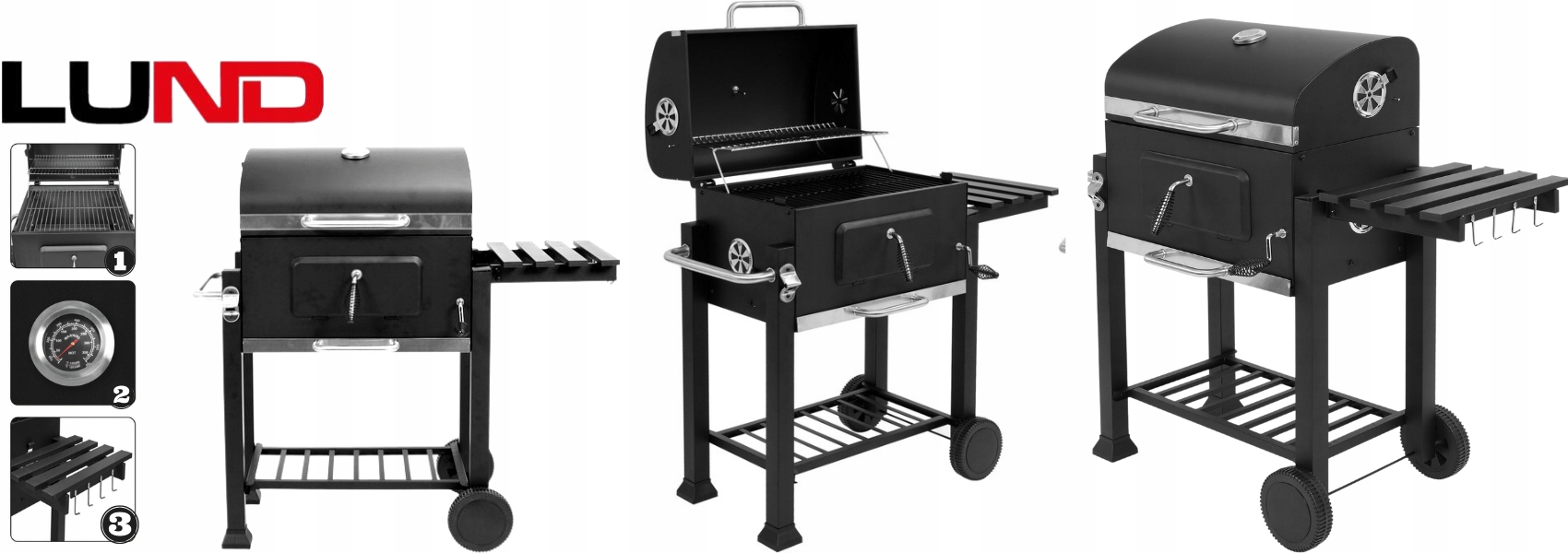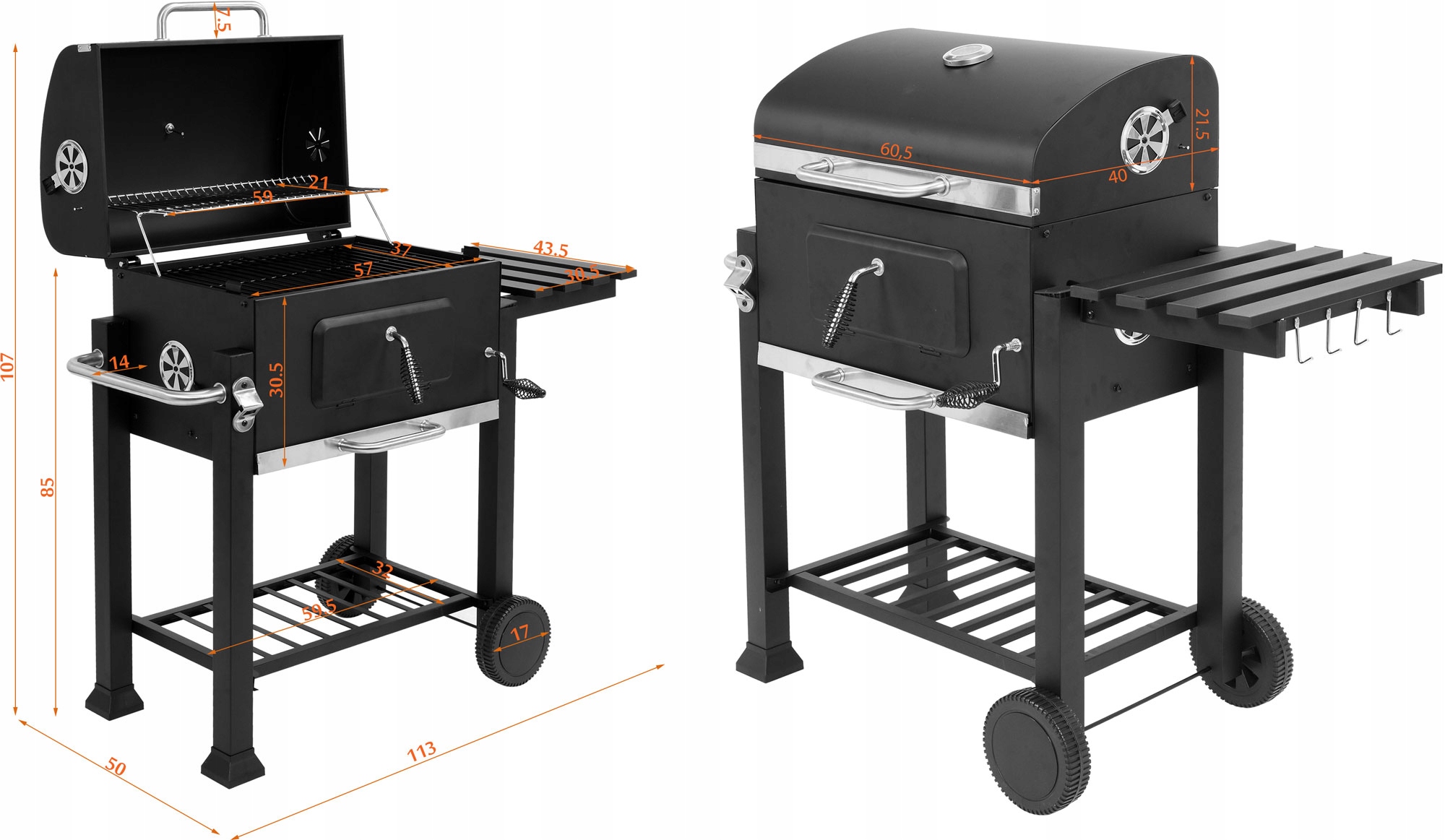 Стабільна конструкція з можливістю транспортування на колесах та закритої зони барбекю є хорошим рішенням, а захист, коли ми гриль з дітьми.