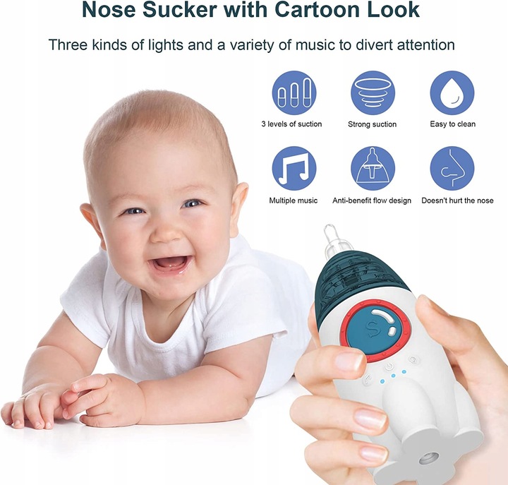 - Дитячий дизайн: обладнаний м'якою музикою та легкою функцією, поява дитячої ракети, ця носова присосна чашка може повністю привернути увагу дитини. Полегшує прибирання слизу для дитини.