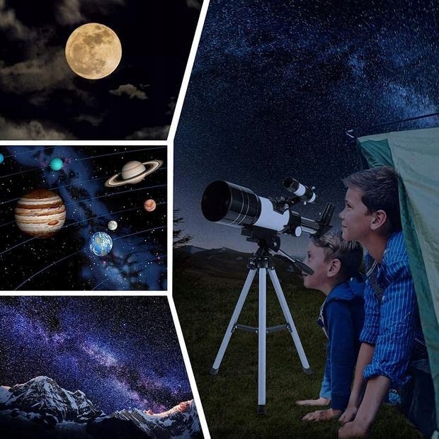 - Рефракційний телескоп із апертурою 70 мм і фокусною відстанню 300 мм, що забезпечує більше світла та чіткіші зображення