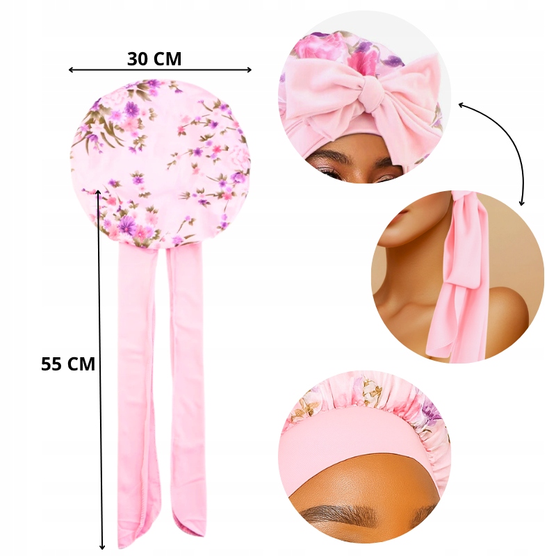 ✔ 1x рожевий атласна шапка у квітках