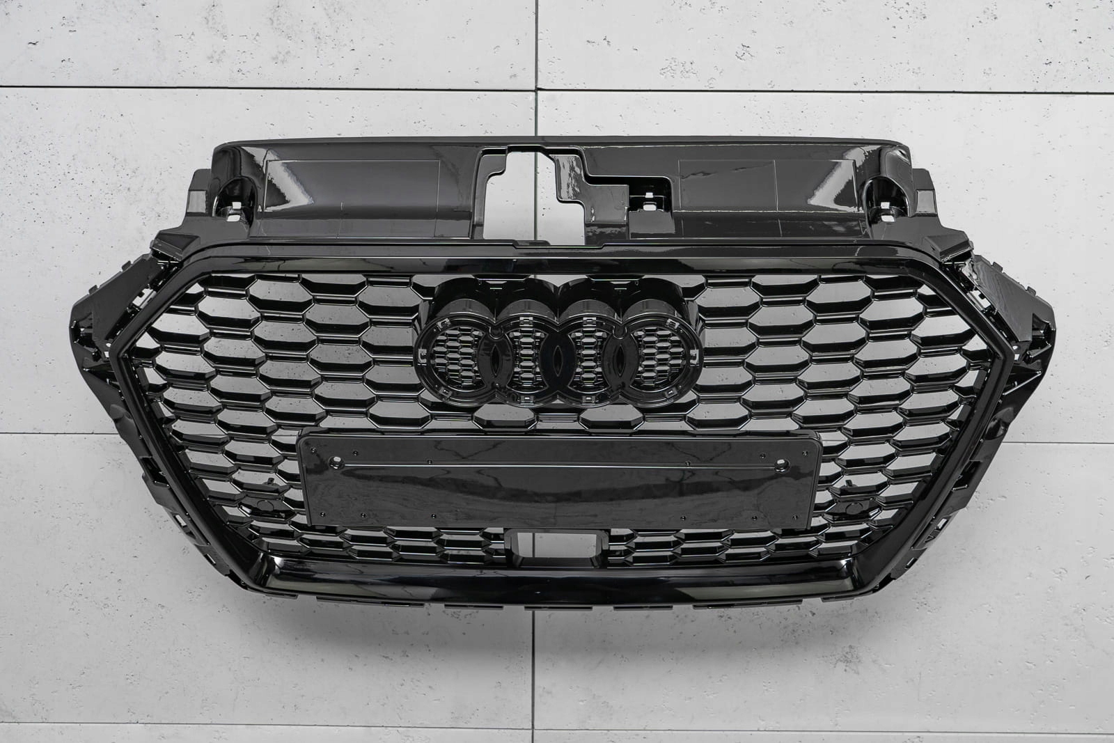 AUDI A3 8V 2017-2020 РЕШІТКА РАДІАТОРА ХЕТЧБЕК З ПЕРЕКЛАДАННЯМ ЛИЦЯ НА RS3 ЧОРНИЙ ПІД РАДАРОМ