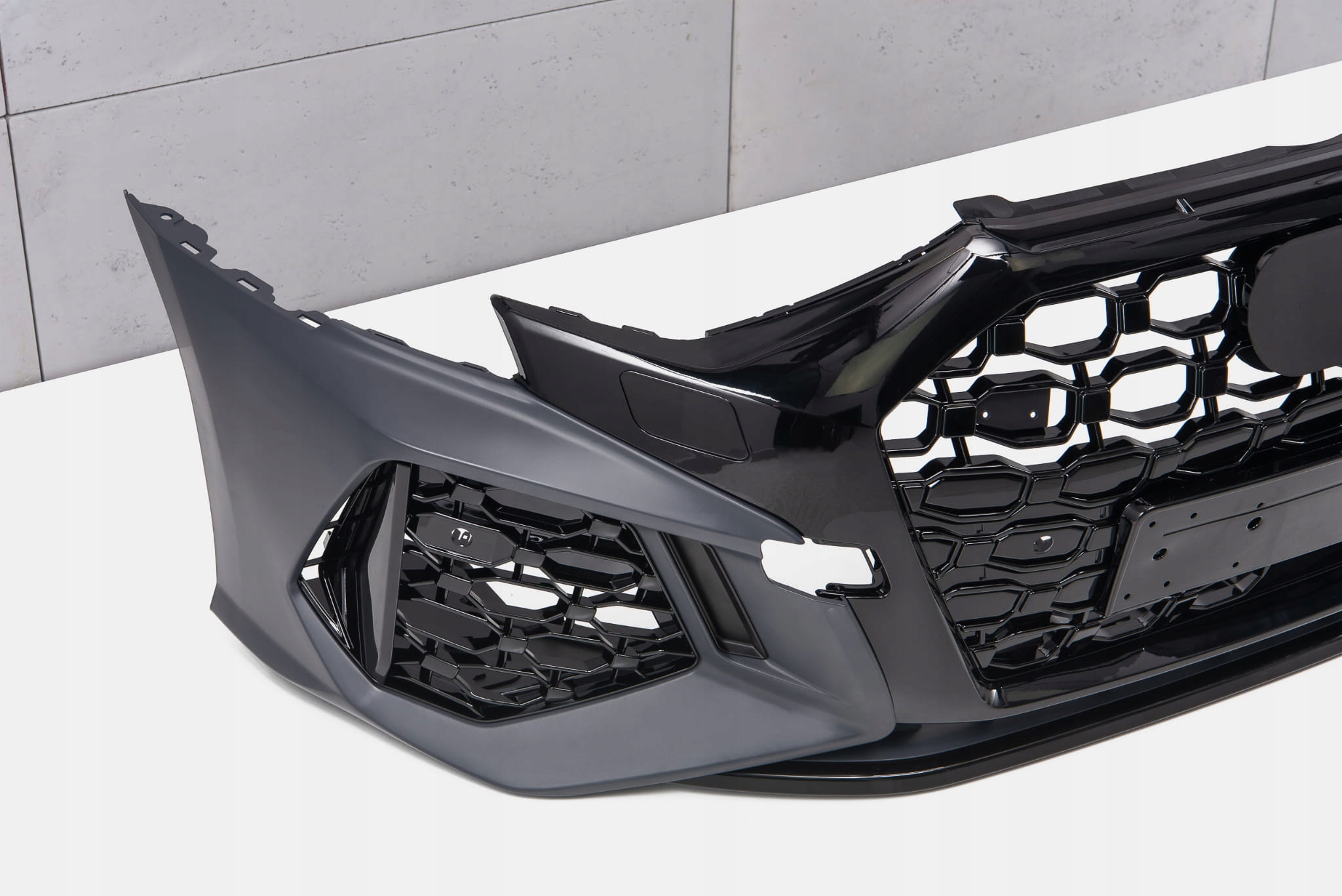 - Передній бампер. Спеціальний бампер розроблений у стилі, типовому для версії RS3, із великими передніми галогенними решітками.