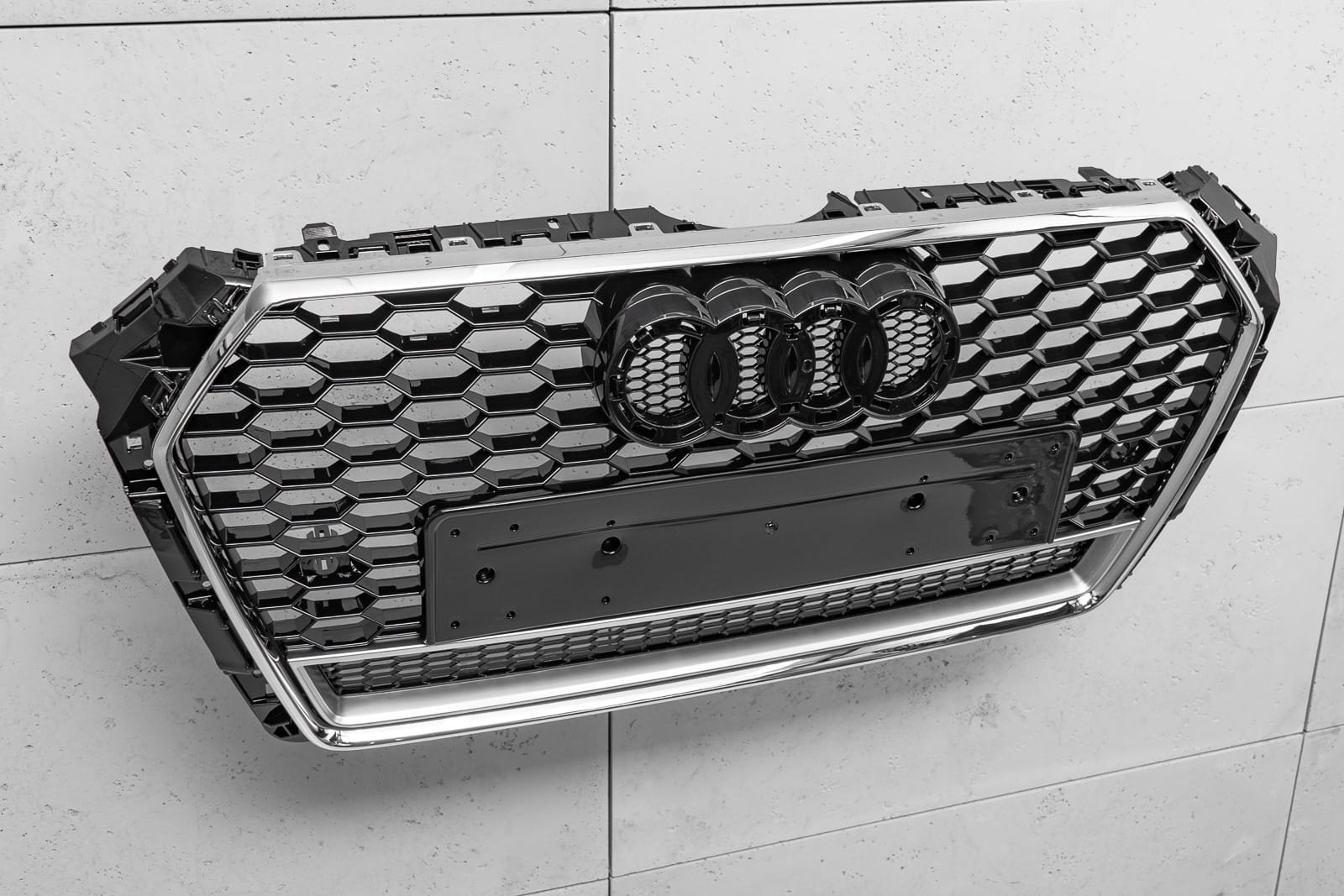 Спеціальна решітка розроблена в стилі, типовому для автомобілів сегменту RS. Решітка радіатора з характерним стільниковим візерунком неминуче нагадує респектабельні потужні спортивні автомобілі найвищої якості. Елемент вражає своїм спортивним характером, а глянець хромованих елементів додає елегантності - завдяки чому він ідеально поєднується з вражаючим дизайном AUDI A4.