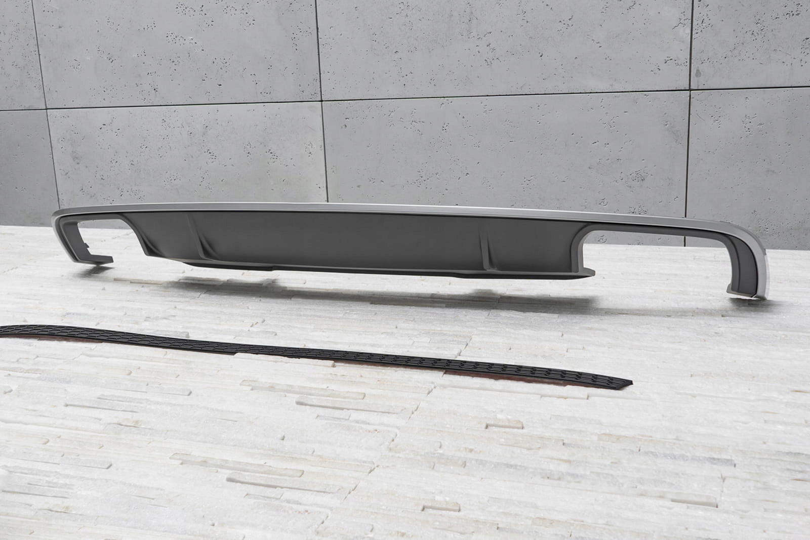 Характерний подвійний вихлоп дозволяє досягти ефекту стилю Audi A4 у версії S4. Дифузор був розроблений, щоб ідеально поєднуватися з іншими елементами обробки, доповнюючи динамічний і спортивний характер вашого автомобіля. Окрім візуальних переваг, дифузор покращує аеродинаміку автомобіля та зменшує шум повітря, що протікає під автомобілем. Виріб виготовлено з високоякісного автомобільного пластику ABS антрацитового та чорного кольору. Дифузор додатково прикрашений стільниковою структурою, що нагадує спортивні автомобілі. У комплект входять елементи кріплення. Дифузор є запасною частиною, сумісною з місцем кріплення в задньому бампері автомобіля. Для монтажу елемента. вам потрібно зняти губу бампера, а потім замінити її дифузором для укладання.