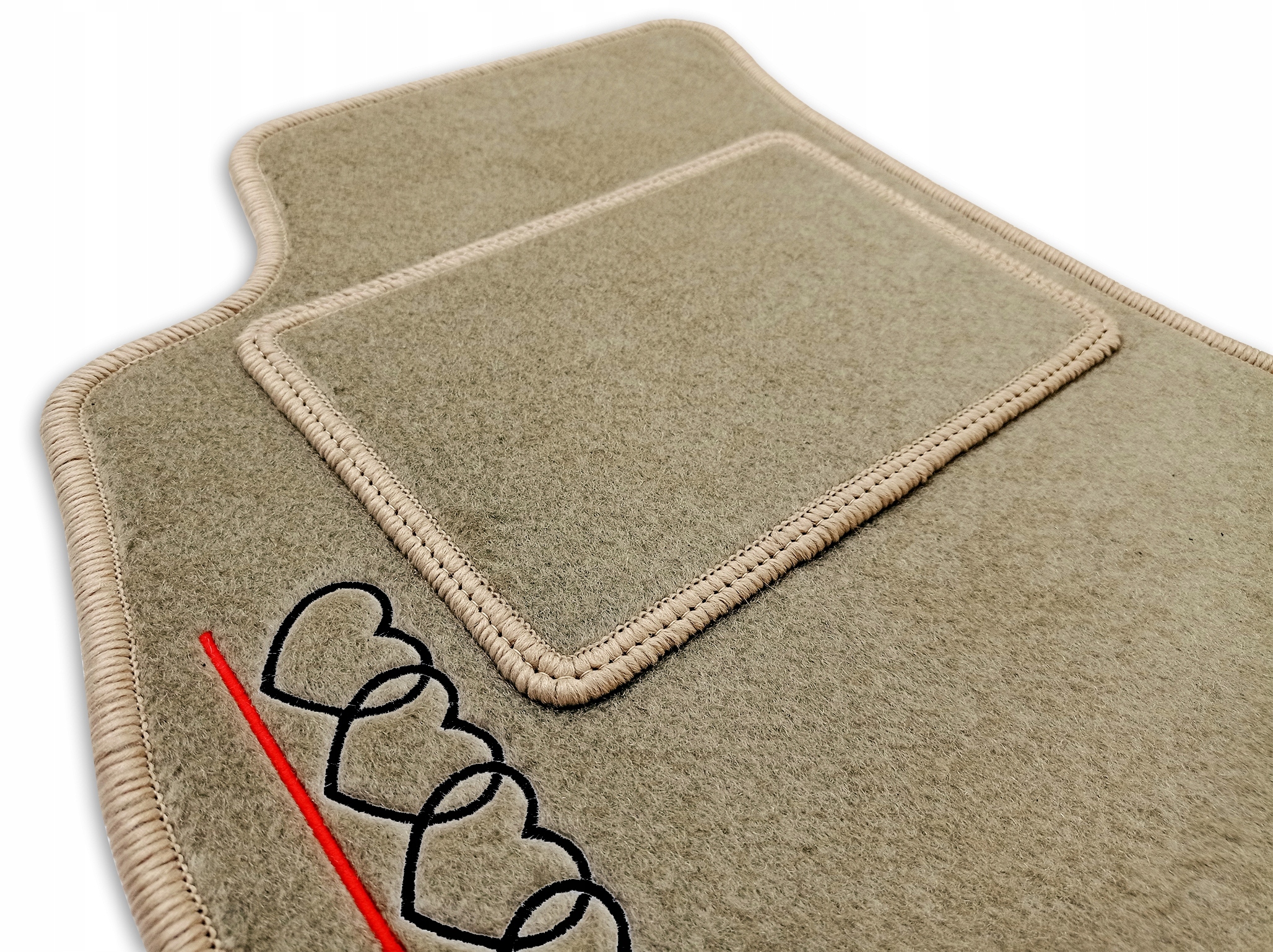 Нижче ми представляємо бежеві велюрові килими, у "стандартній" версії з унікальною вишивкою з вагою 1750 г/м2 товщиною 0,5 см, обробленим міцною і міцною бежевою пряжею. Килими, розроблені та ретельно зроблені лазотою, пристосованими до форми вашого автомобіля. Дно килимів покрито шаром грубої гуми, що запобігає і ковзає. Для килима водіїв зшивають, щоб запобігти швидшим, що запобігає килимку.