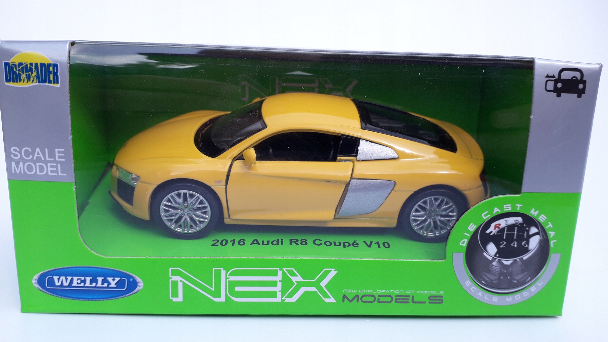 Audi R8 Coupe V10 2016 Yellow Metal Model WELLY Масштаб 1:34