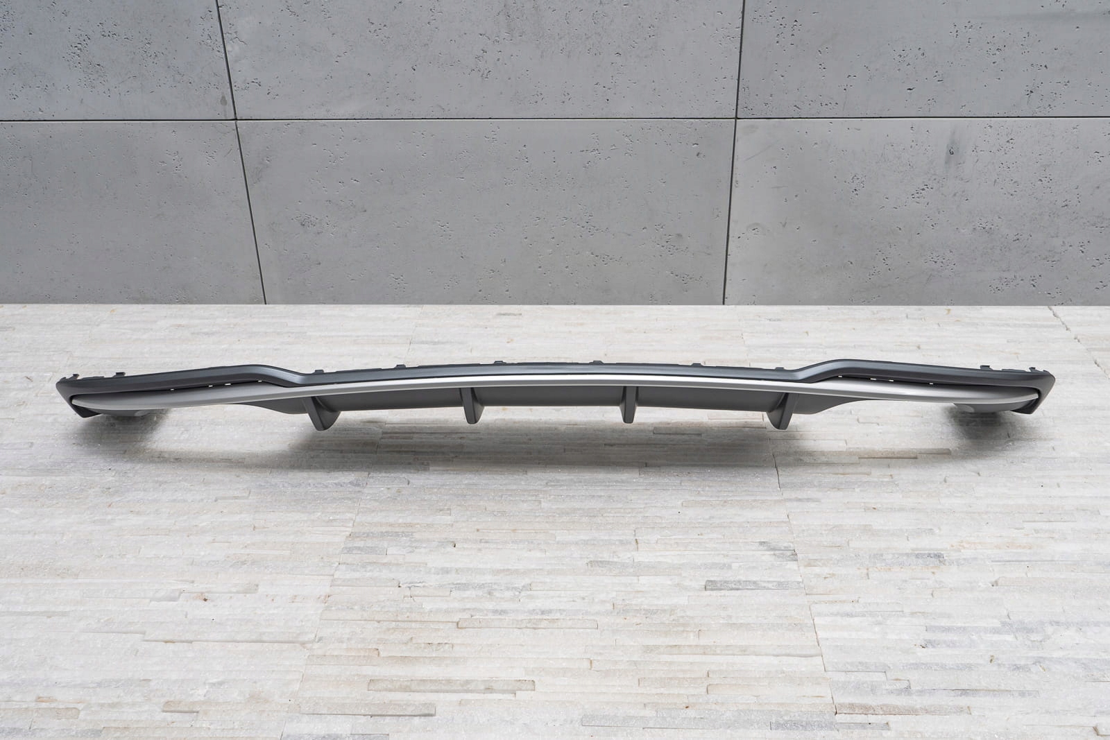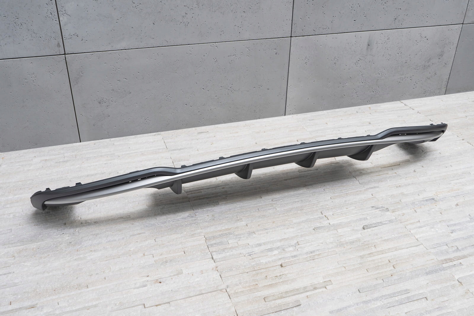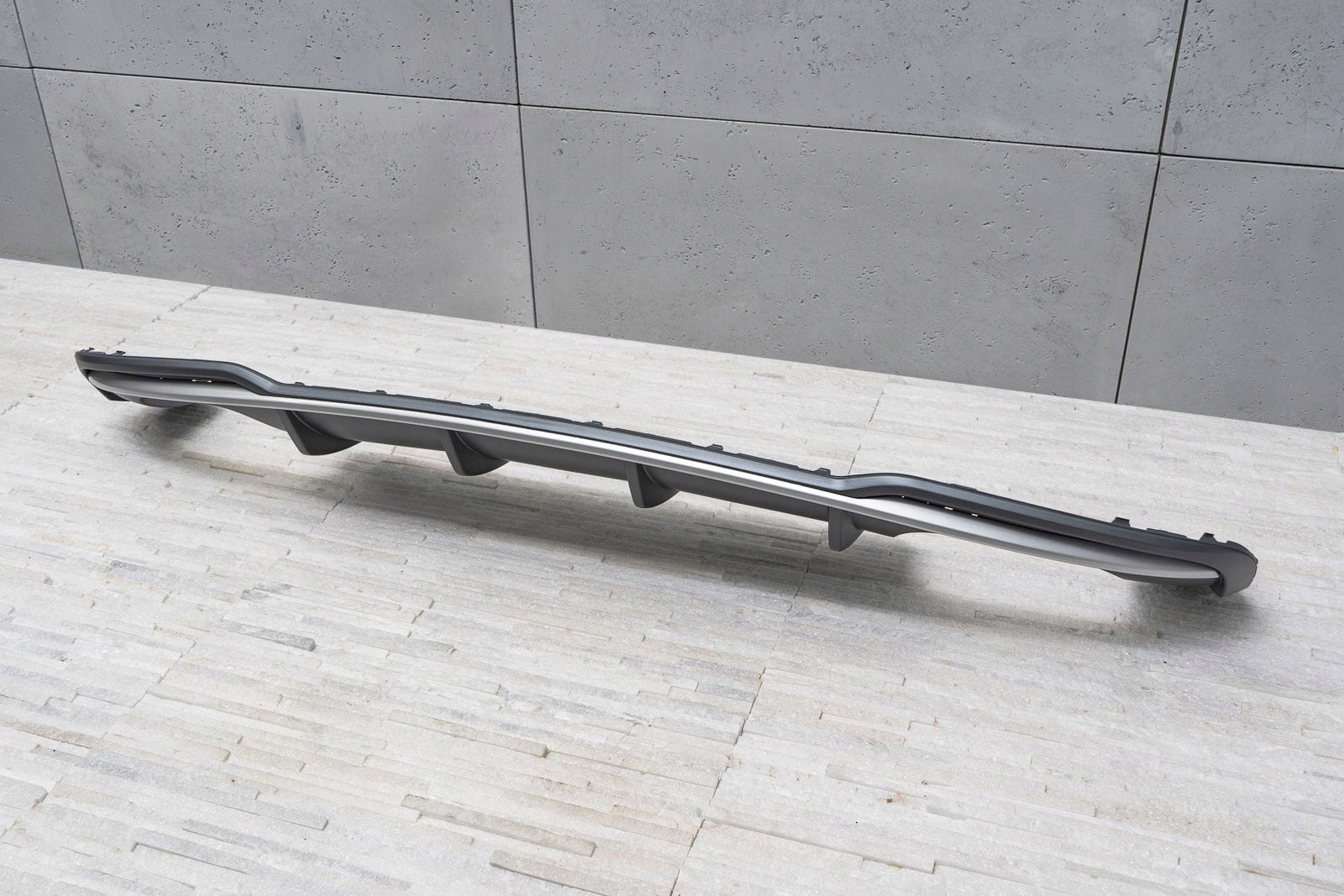 Дифузор був розроблений, щоб ідеально поєднуватися з іншими елементами обробки, доповнюючи динамічний і спортивний характер вашого автомобіля. Окрім візуальних переваг, дифузор покращує аеродинаміку автомобіля та зменшує шум повітря, що протікає під автомобілем. Виріб виготовлено з високоякісного автомобільного ABS-пластику сріблястого кольору з матовим покриттям. Справжньою окрасою дифузора є хромована смужка, що нагадує спортивні автомобілі. У комплект входять елементи кріплення. Дифузор є запасною частиною, сумісною з місцем кріплення в задньому бампері автомобіля. Для монтажу елемента. вам потрібно зняти губу бампера, а потім замінити її дифузором для укладання.