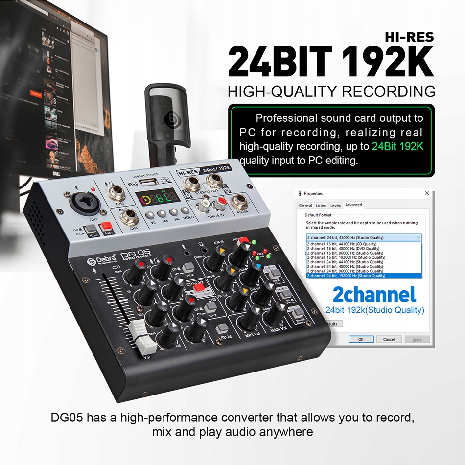 Професійна звукова карта з 2 входами та 2 виходами для комп’ютерного програмного забезпечення для запису, робить справжні високоякісні записи, підтримує якість звуку 24 біт/192 КБ, без втрат Передача у форматі HI-RES, розділення доріжок і обробка звуку для зручності.