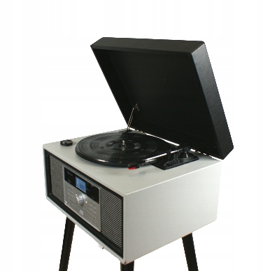 У його компактній валізі стереодинастиці побудовані -в завдяки якому поворотній стіл негайно готовий до використання. Ви можете грати в вінілові пластини з трьох різних розмірів на вертушці. Мері Енн також має різні варіанти відтворення: CD-програвач відтворює компакт-диски, формати CD-R, CD-RW та MP3, а також радіо DAB+ та FM з функцією аутоскансуючих бажаних радіостанцій. Для відтворення MP3-файлів або для практичного запису з вінілових записів, компакт-дисків, радіо або введення Aux-це USB-порт. і це не все: інтерфейс bluetooth gramophone Mary Ann дозволяє відтворювати потік із смартфона, планшета чи комп'ютера. Меблі: Поворотний стіл Auna Mary Ann дозволяє переробити колекції чорних вінілових записів і привертає увагу в кожному житловому середовищі.