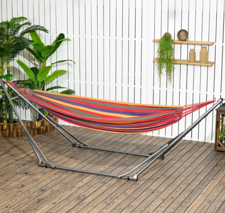 Ідеально підходить для саду, балкона, тераси та навіть інтер'єрів - ви можете насолоджуватися комфортом без необхідності встановлювати гачки або шукати дерева. Складний дизайн полегшує зберігання та транспорт, що робить його чудовим супутником відпусток.