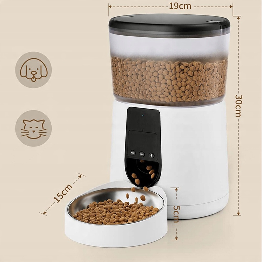 - Автоматичний подача кішок з віддаленим контролем програми (лише Wi-Fi 2.4G). Ви можете годувати свого домашнього улюбленця мобільним телефоном (з Android або iOS) у будь -який час і де завгодно, а також відстежувати історію годування для контролю. Ви можете готуватися до 10 прийомів їжі на день, після 1-12 порцій для їжі та 7 г ± 2 г на порцію. Пристрій можна керувати багатьма мобільними пристроями.
