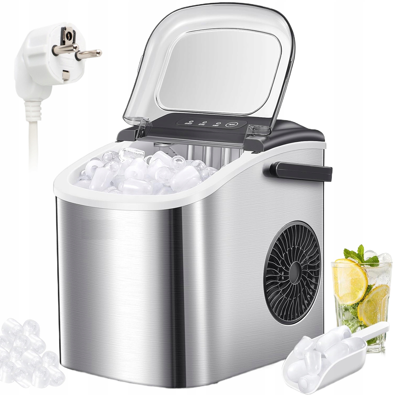 🧊 🧊 🧊 🧊panel Управління дуже простим у використанні. Наповніть крижану машину водою, натисніть кнопку, виберіть розмір льоду, і він готовий. Індикатор освітлюється, коли не буде достатньо води, або кошик з льодом буде заповнений.