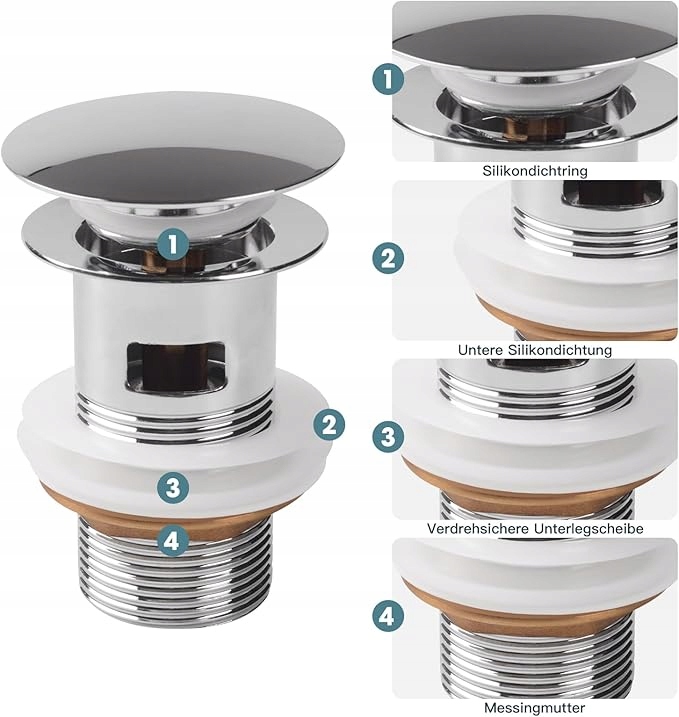 Завдяки пружині тиску, відтік може бути закритий і відкрити щільно і щільно натиснувши одну кнопку.