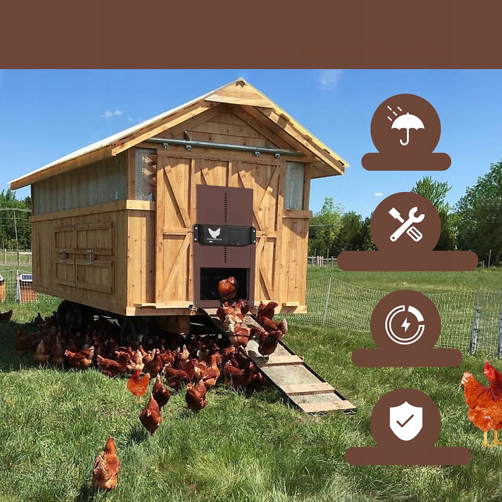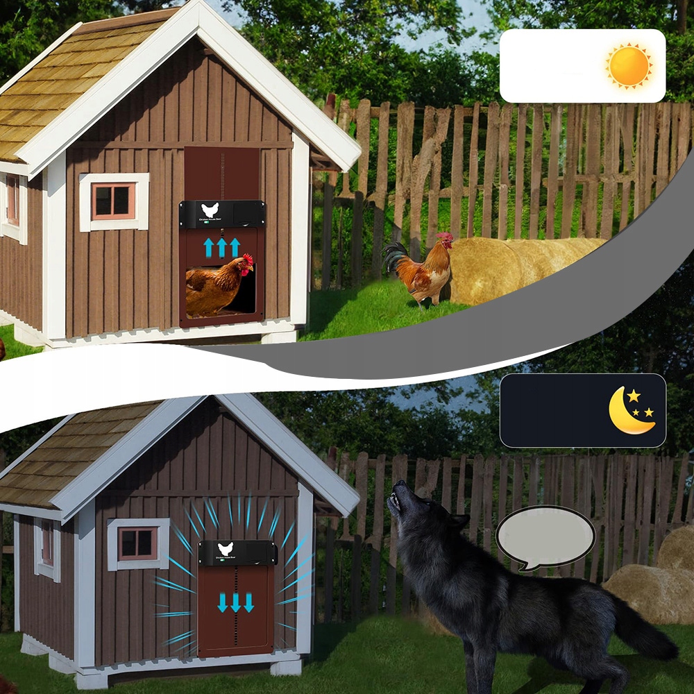 【Двері Purcor з датчиком світла】 Двері курячого кура контролюються датчиком світла. Коли стане темно, двері автоматично зачиняться, а коли вона темніє, двері автоматично відкриваються. Вам не доведеться виходити на двір, щоб самостійно відкрити двері курячого купа.
