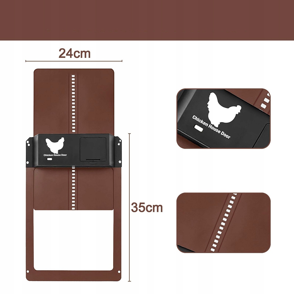 【високоякісний матеріал】 Автоматичні двері до курки виготовляються з високоякісного пластику, що непросто згинається або деформація, витримує температуру від -22 ℉ до 131 ℉, навіть у негоду, ви можете використовувати її нормально. Використання】 Відкривача дверей для курей використовується у дворі та на фермах, підходить для більшості птиці, таких як кури та качки, а також може використовуватися, якщо ваші коти та собаки - це невелика конструкція.