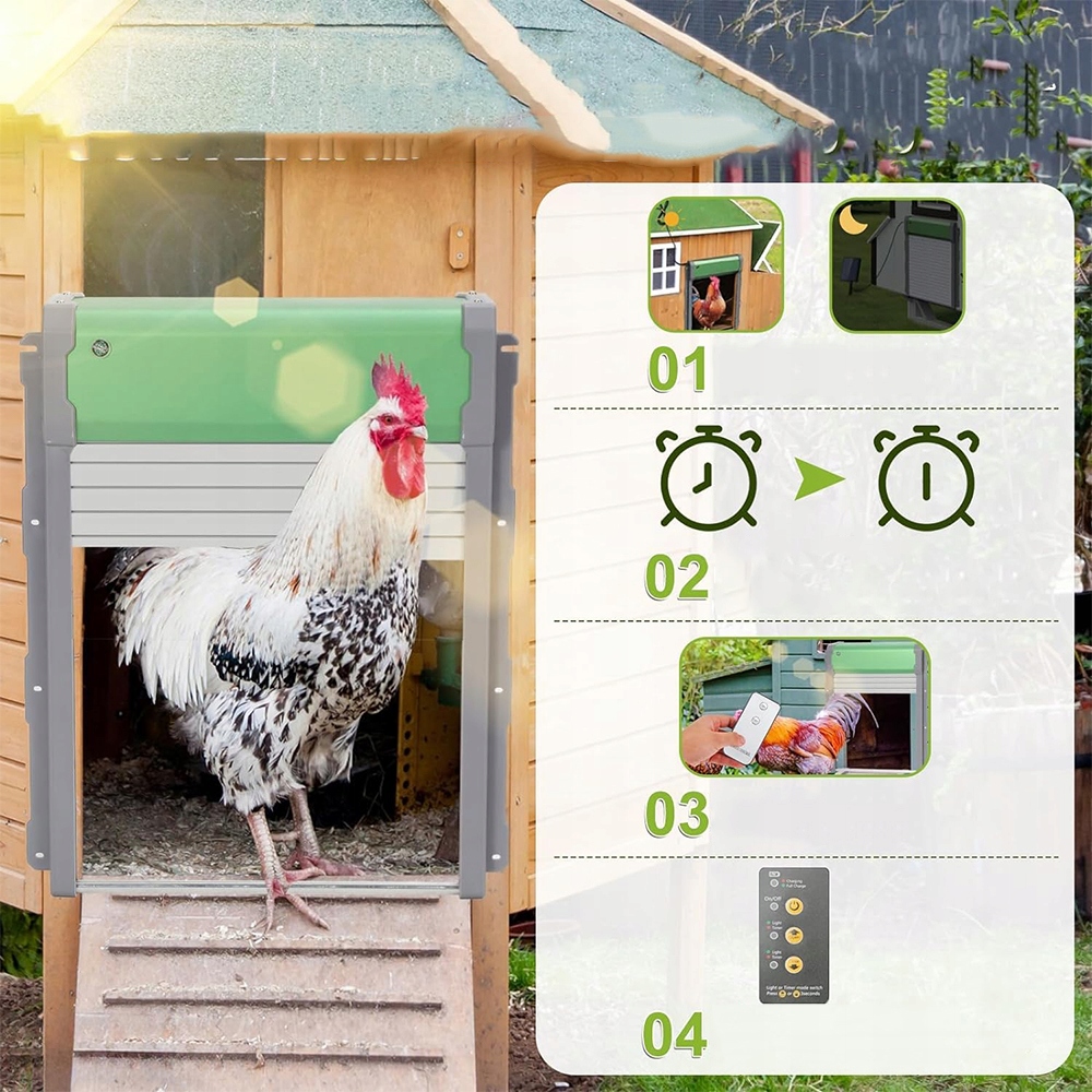🐔 Інтелектуальне управління: Виберіть один із 4 режимів: посібник, пульт дистанційного керування, датчик світла та таймер. Далеко. 4