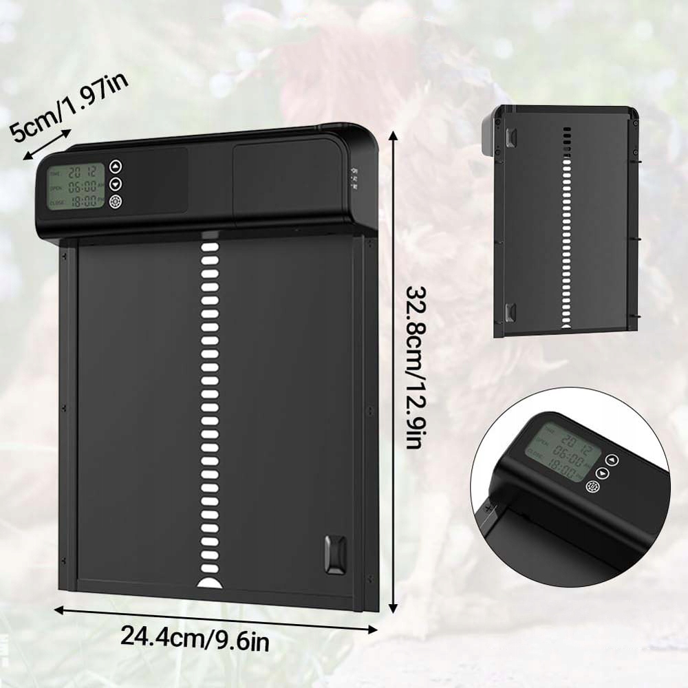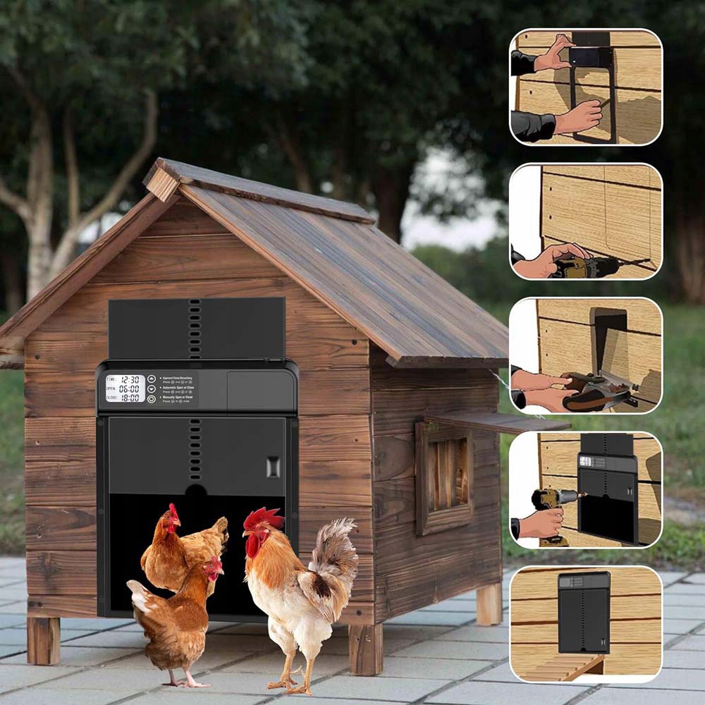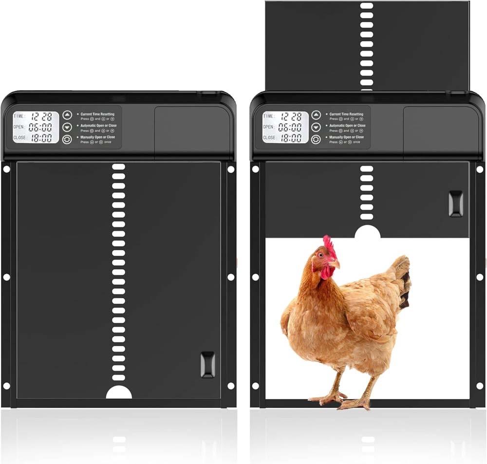 - Виготовлений з міцного алюмінію, двері пекла стійкі до корозії та витримують екстремальні погодні умови, що робить їх достатньо сильними для забезпечення безпеки та захисту курки. Оснащений цілодобовим таймером, ви можете вільно регулювати години відкриття та закриття щодня, з точністю хвилини.